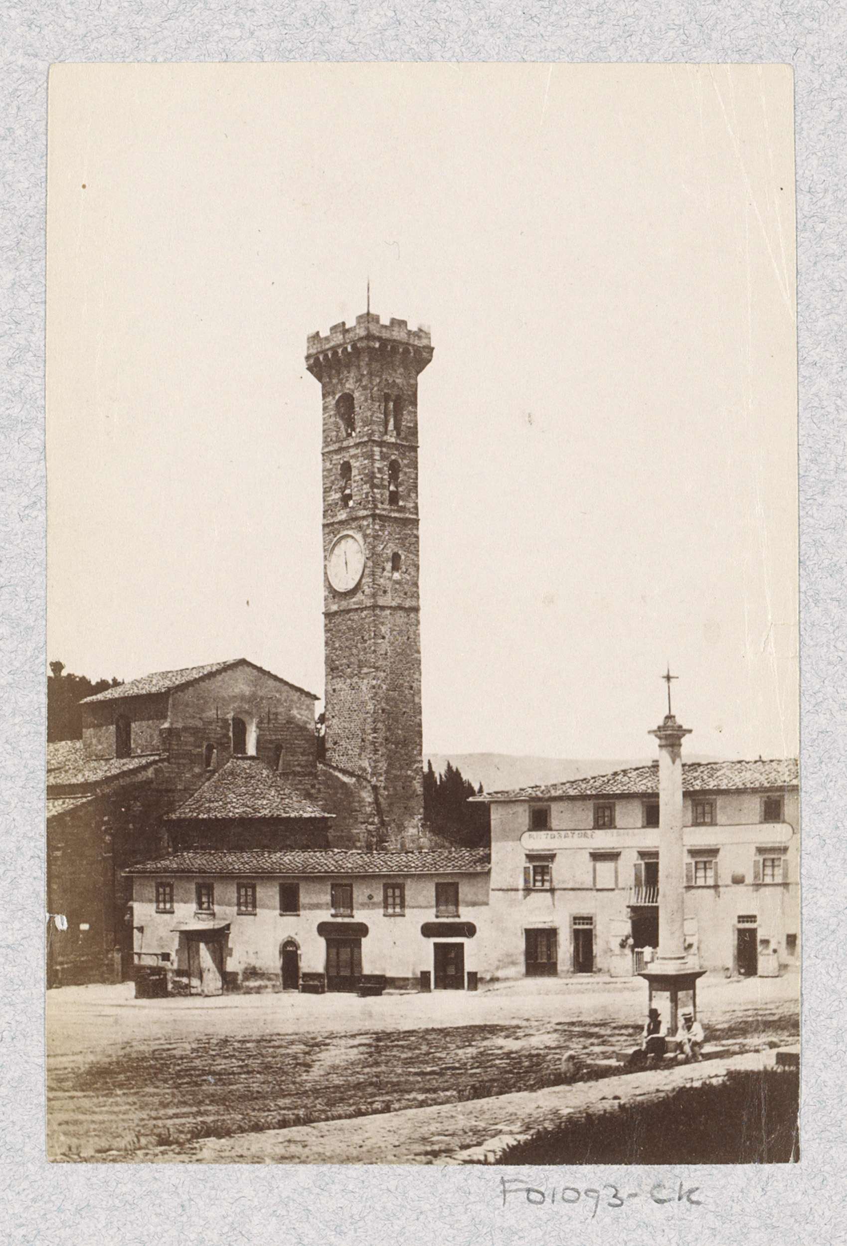 Plein in Fiesole met de toren van de kathedraal en o...