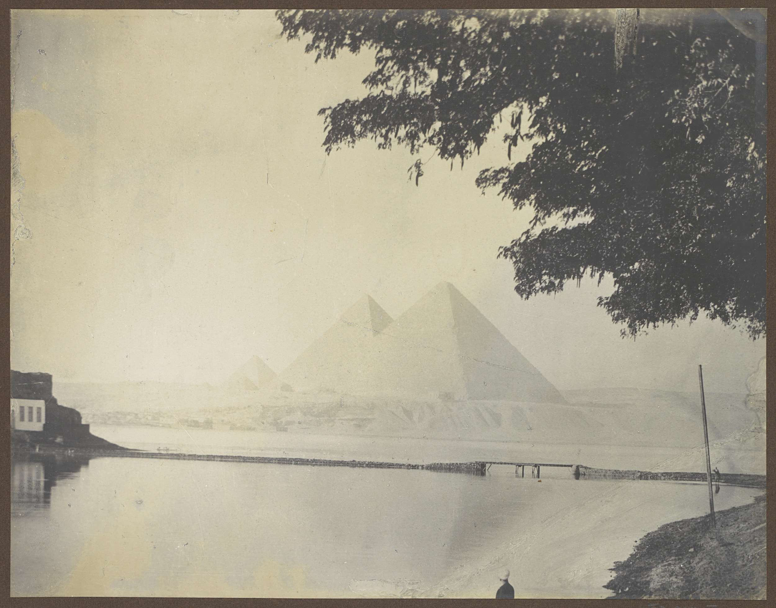 Gezicht op de piramides van Gizeh vanaf het water