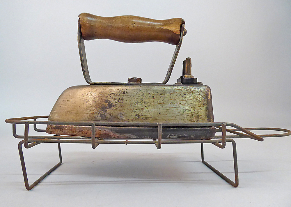 Strijkijzer met houten handvat