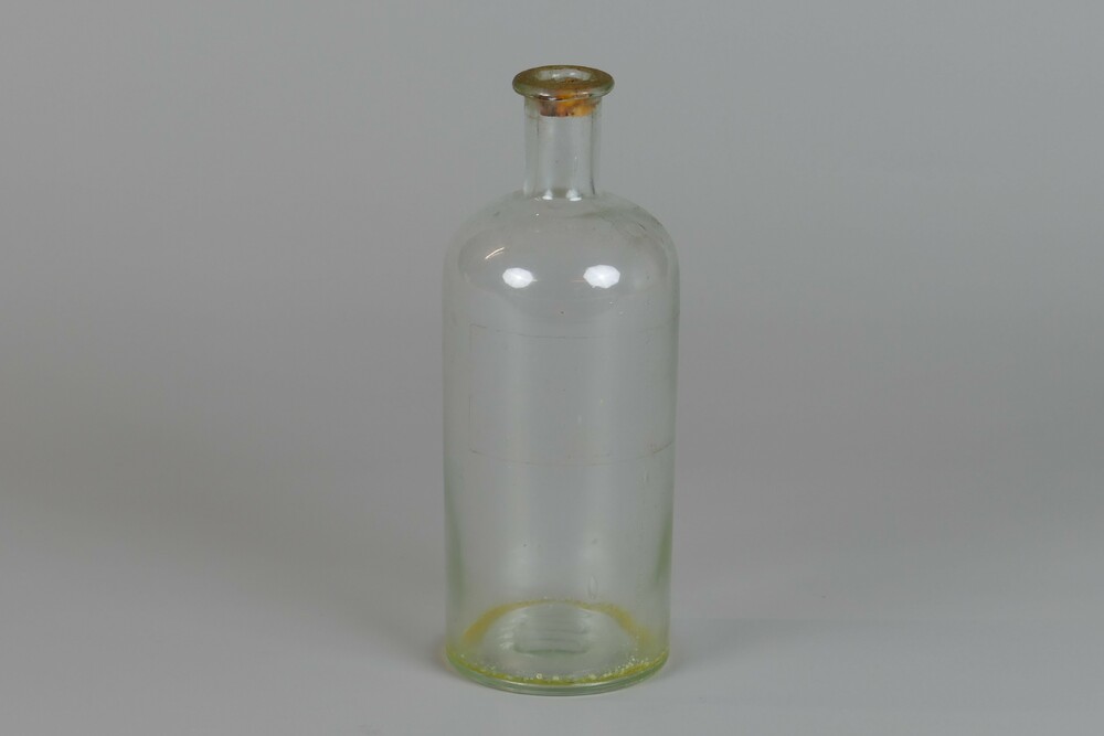 Fles van kleurloos glas, met kurkje, gebruikt voor v...