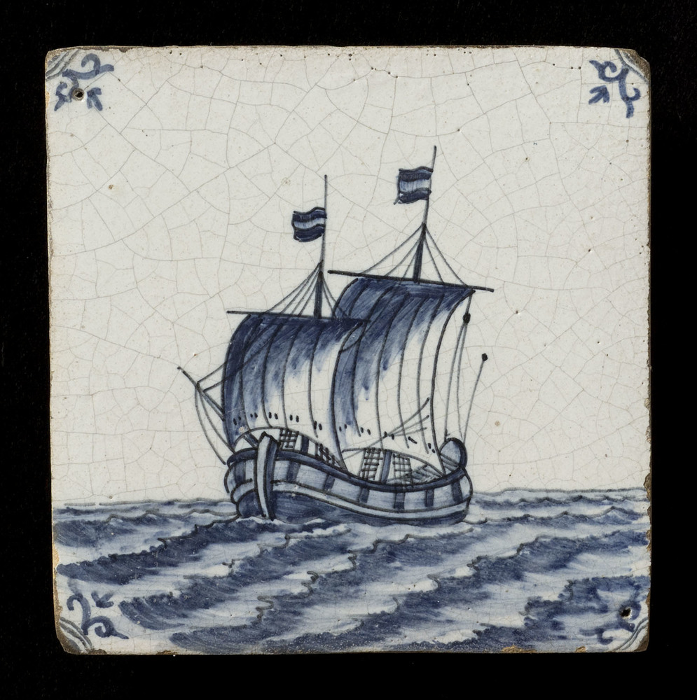 Tegel van keramiek, tinglazuur, voorstellende een sc...