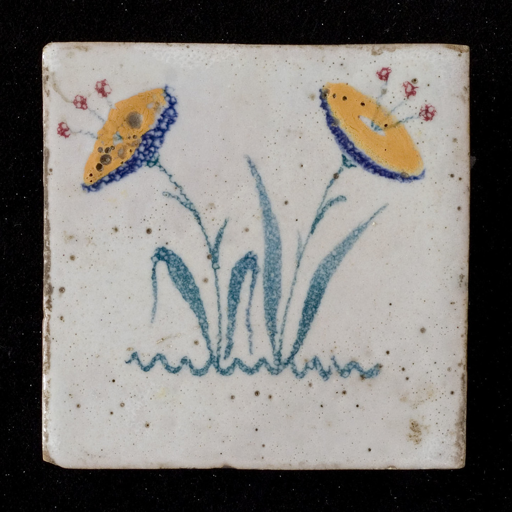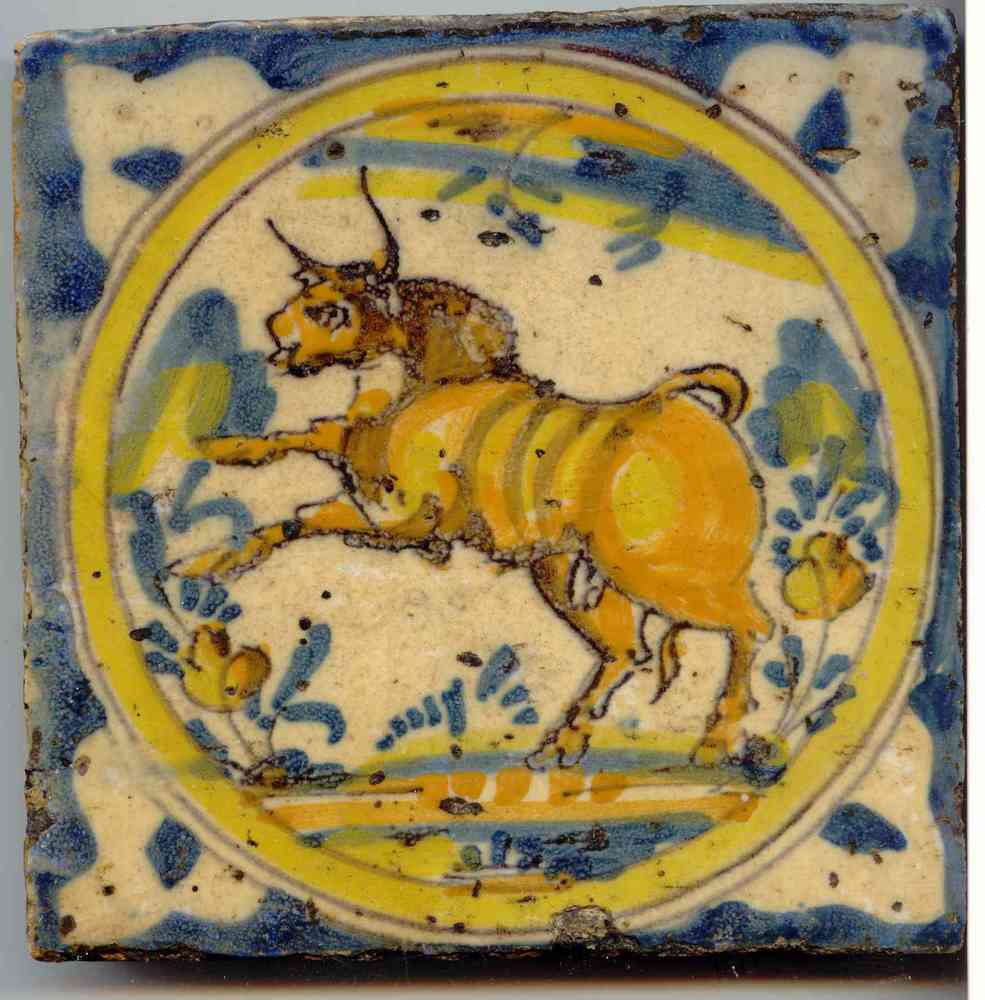 Tegel van keramiek, tinglazuur,gesponst, voorstellen...