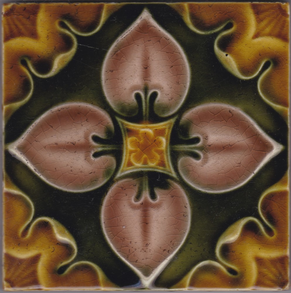 Tegel in reliëf, voorstellende gestillerde bloem, ve...