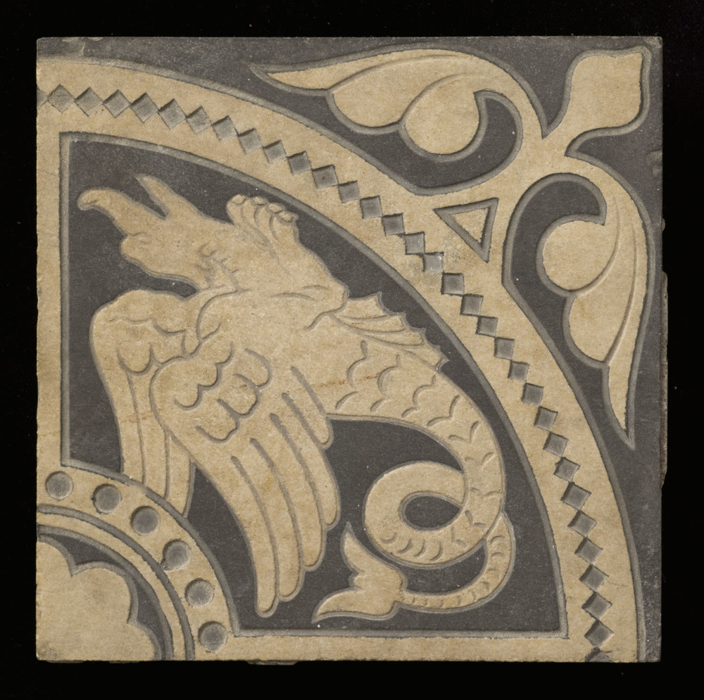 Vloertegel van keramiek, relief, geperst, voorstelle...