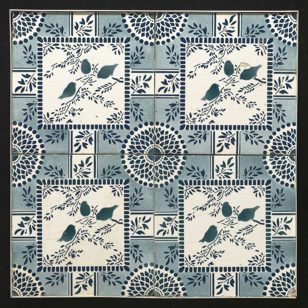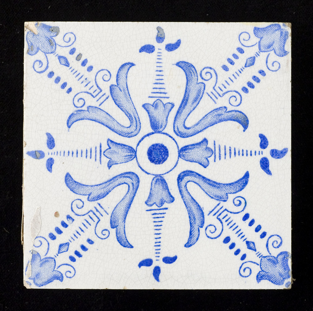 Tegel van keramiek, tinglazuur, sjabloon, gemaakt in...