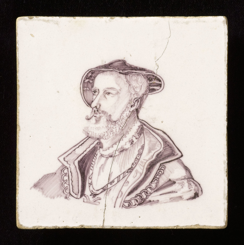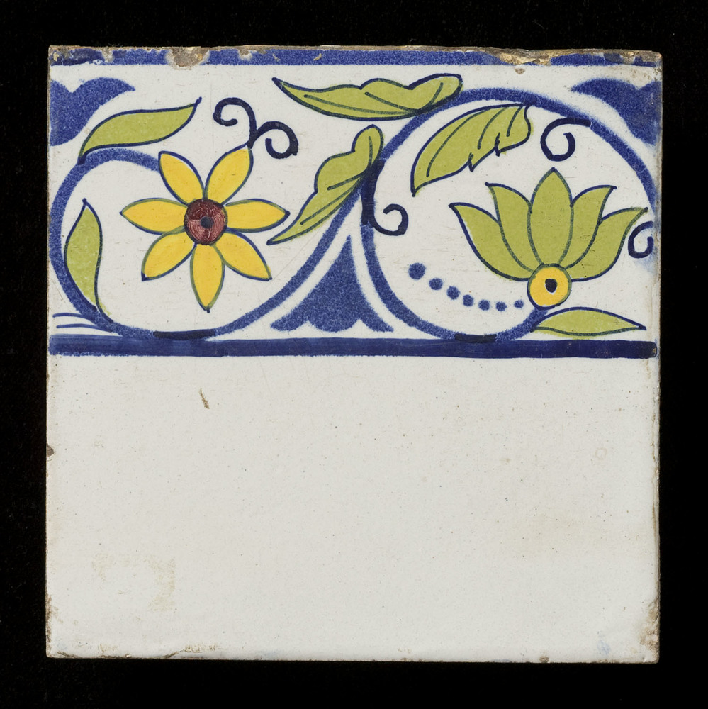 randtegel van keramiek met tinglazuur, voorstellende...