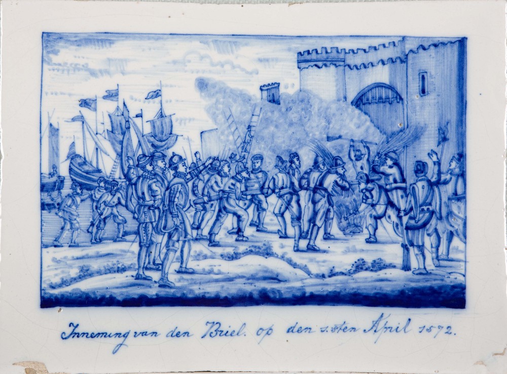 Tegelplaat 'Inneeming van Den Briel', vervaardigd in...