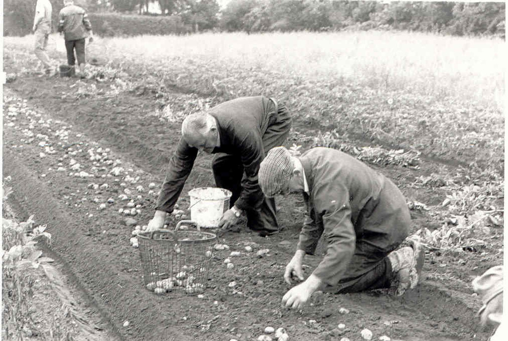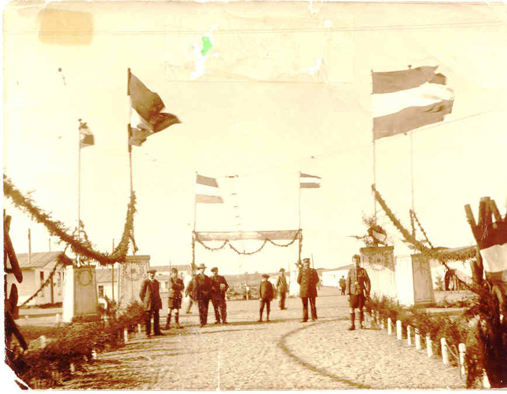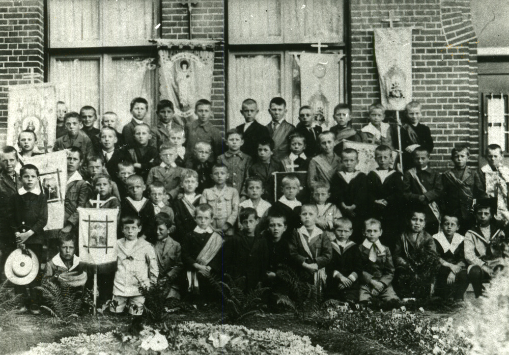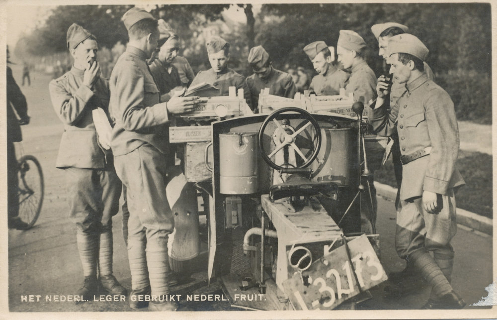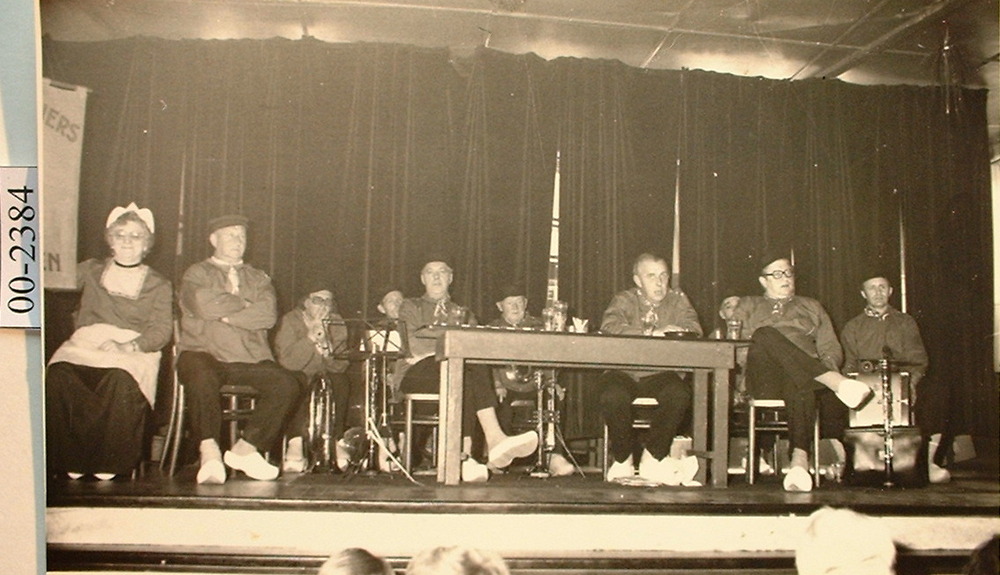 Zwart-wit foto van de schutterij op de dijk in Herwe...