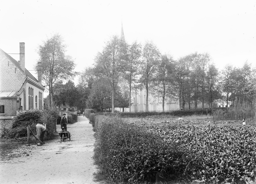 Gezicht op Rk kerk vanaf zuideinde van de Langekerks...