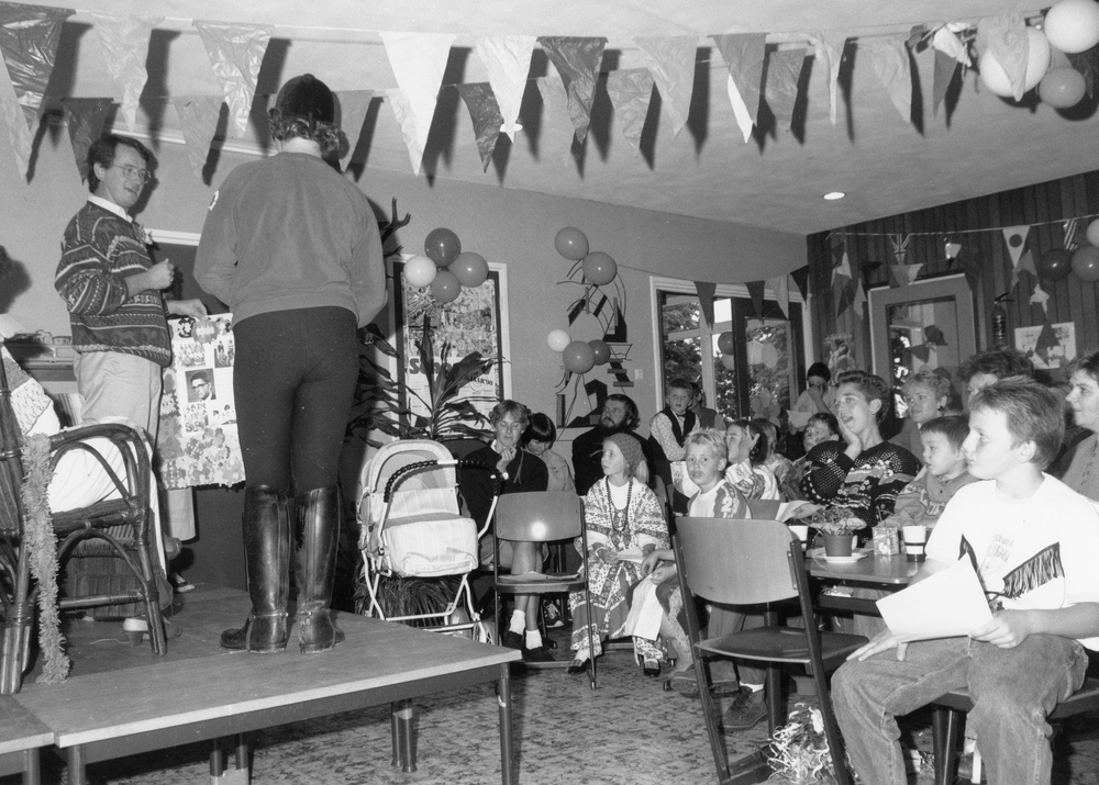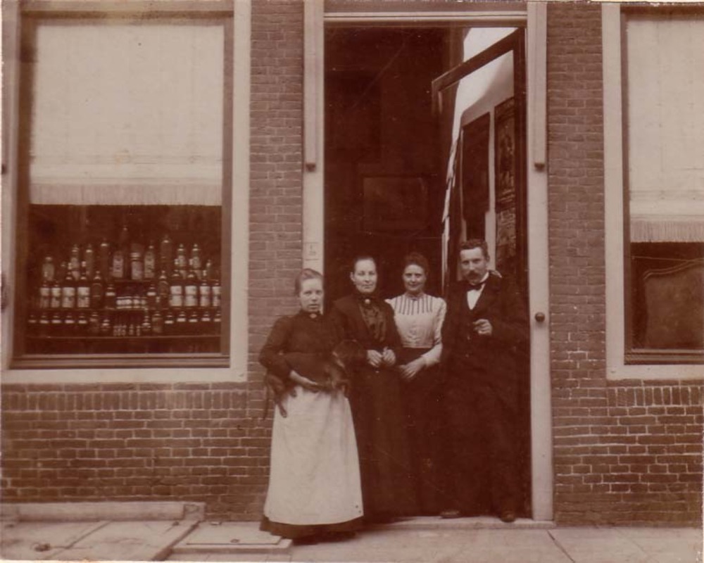 Drankenzaak in de Boschstraat,eigenaar met personeel.