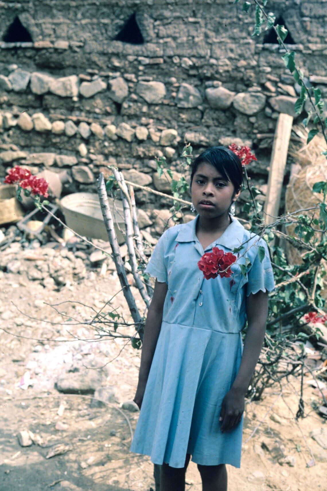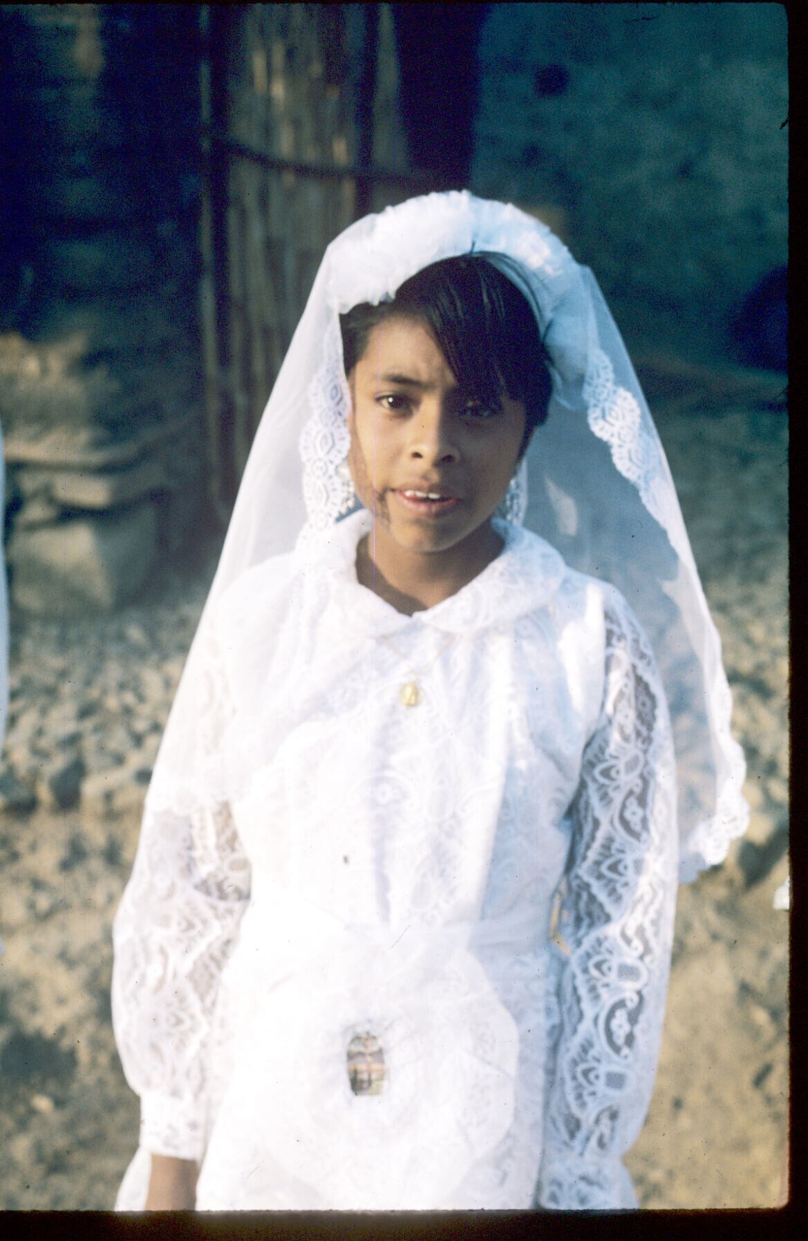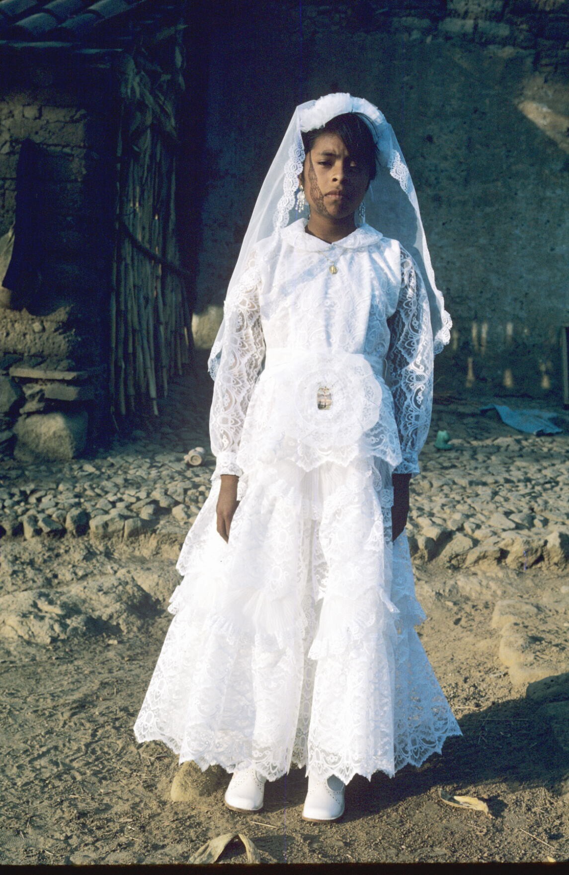 Macrina Castillo in haar Communiejurk, op weg naar kerk