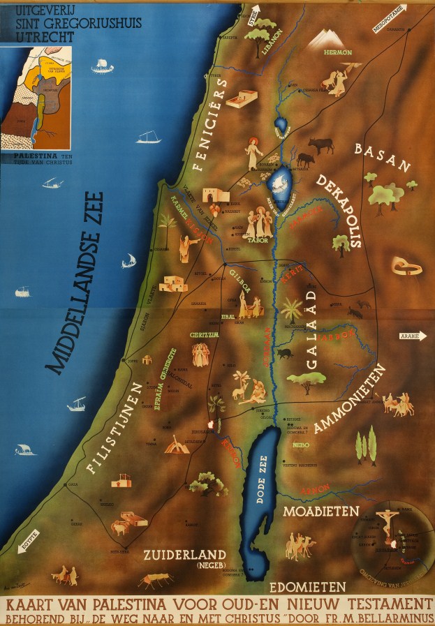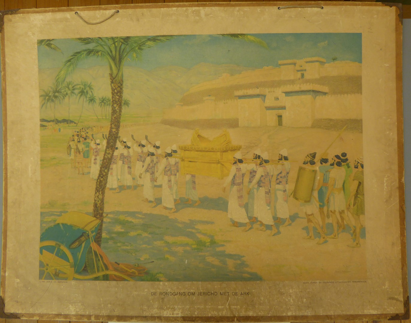 Schoolplaat met "De rondgang om Jericho met de ark"