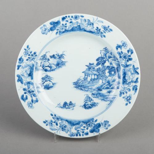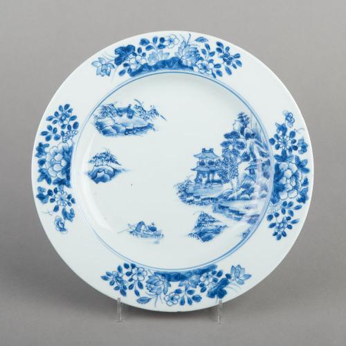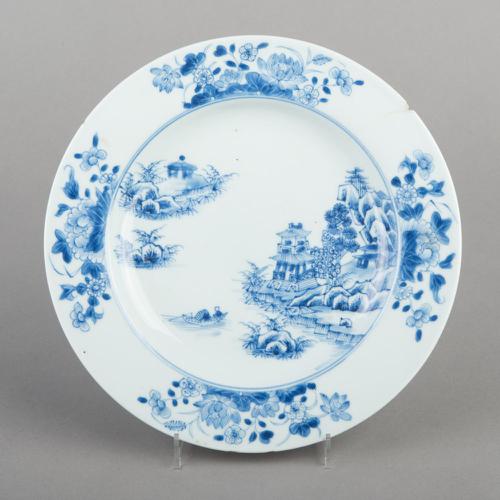 Bord van Chinees porselein met landschapdecoratie