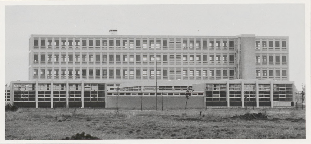 Het schoolgebouw van de L.T.S. gelegen aan de Teiste...