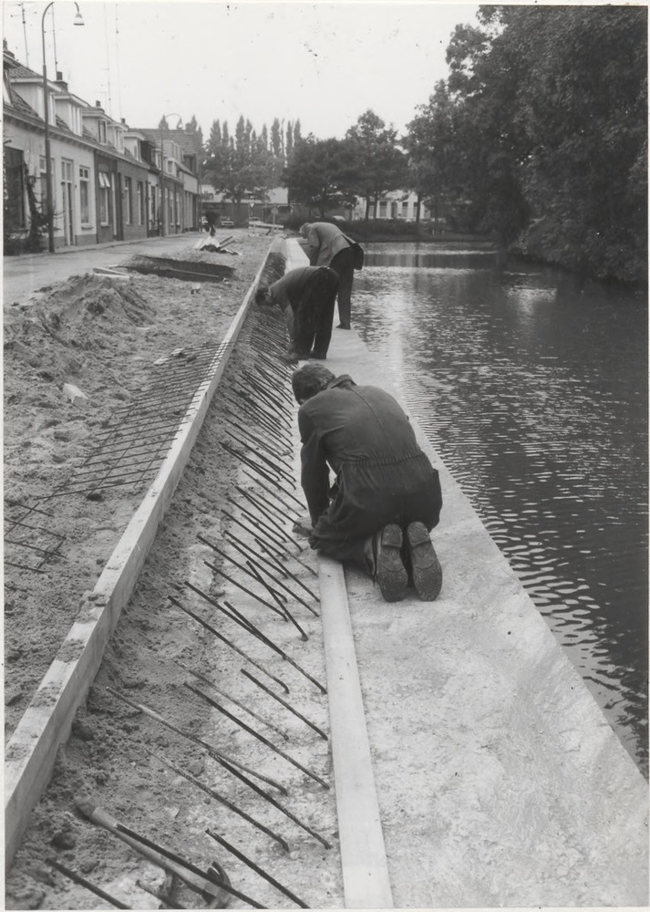 Werkzaamheden nieuwe "beschoeiing" St. Walburgbuiten...