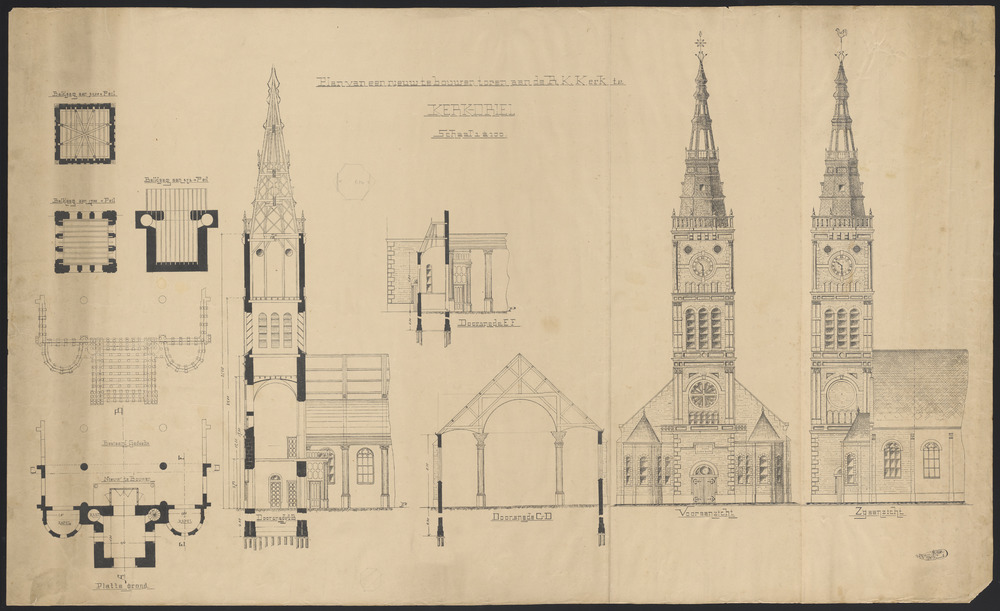 Plan van een nieuw te bouwen toren aan de R.K. Kerk ...