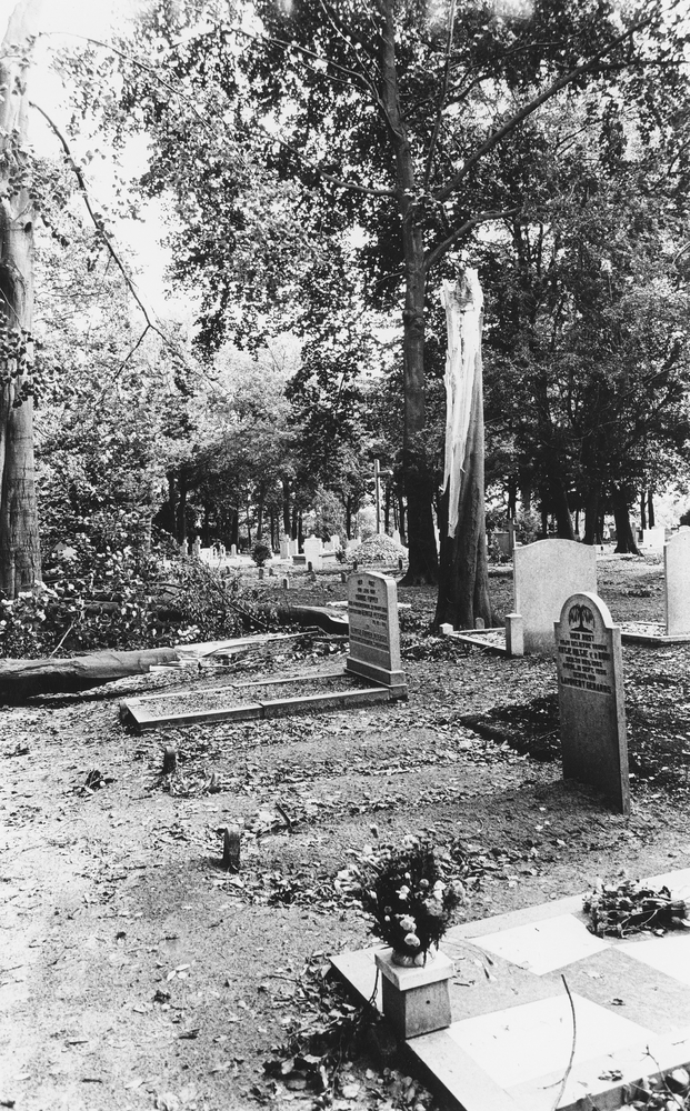 Schade na windhoos op de algemene begraafplaats aan ...