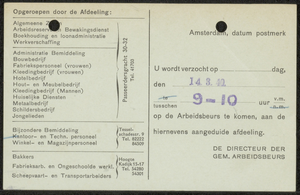 Briekaart van de Gemeente Arbeidsbeurs Amsterdam
