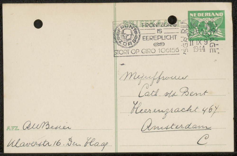 Briefkaart van 10 september 1944 uit De Haag