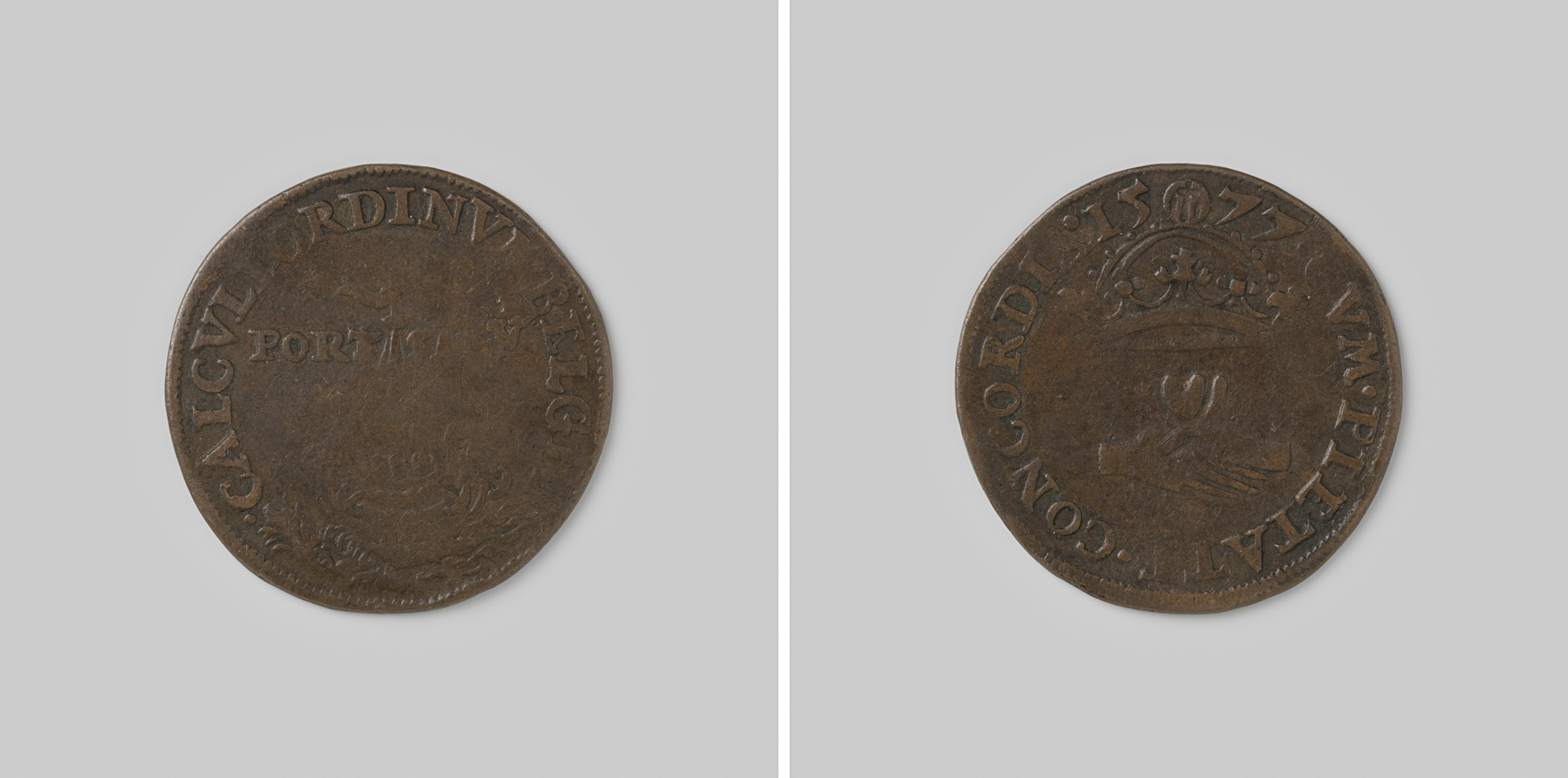 Rekenpenning uit Dordrecht op de moeilijke tijden 1577