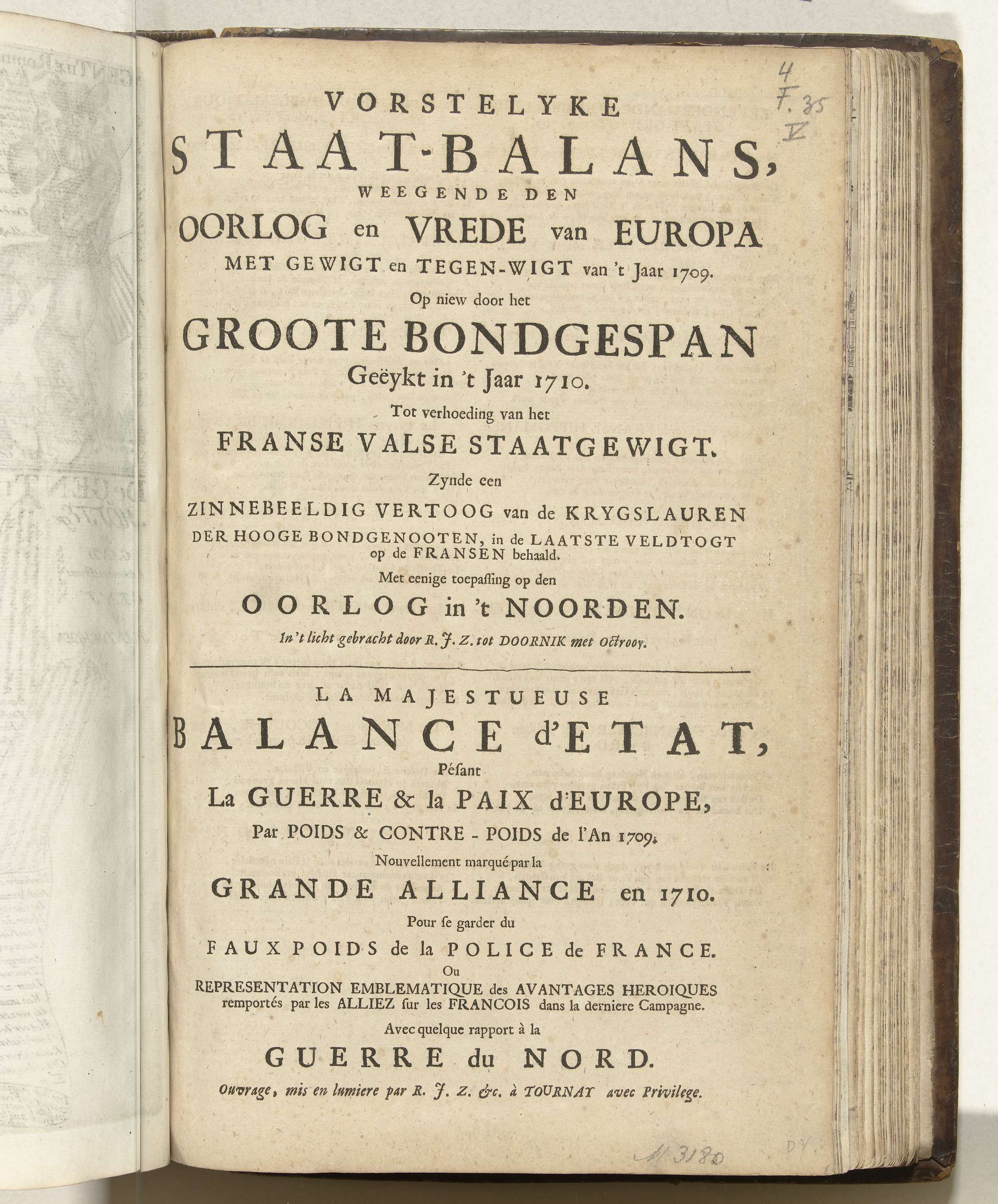 Titelpagina voor: Vorstelyke Staat-Balans, 1709-1710