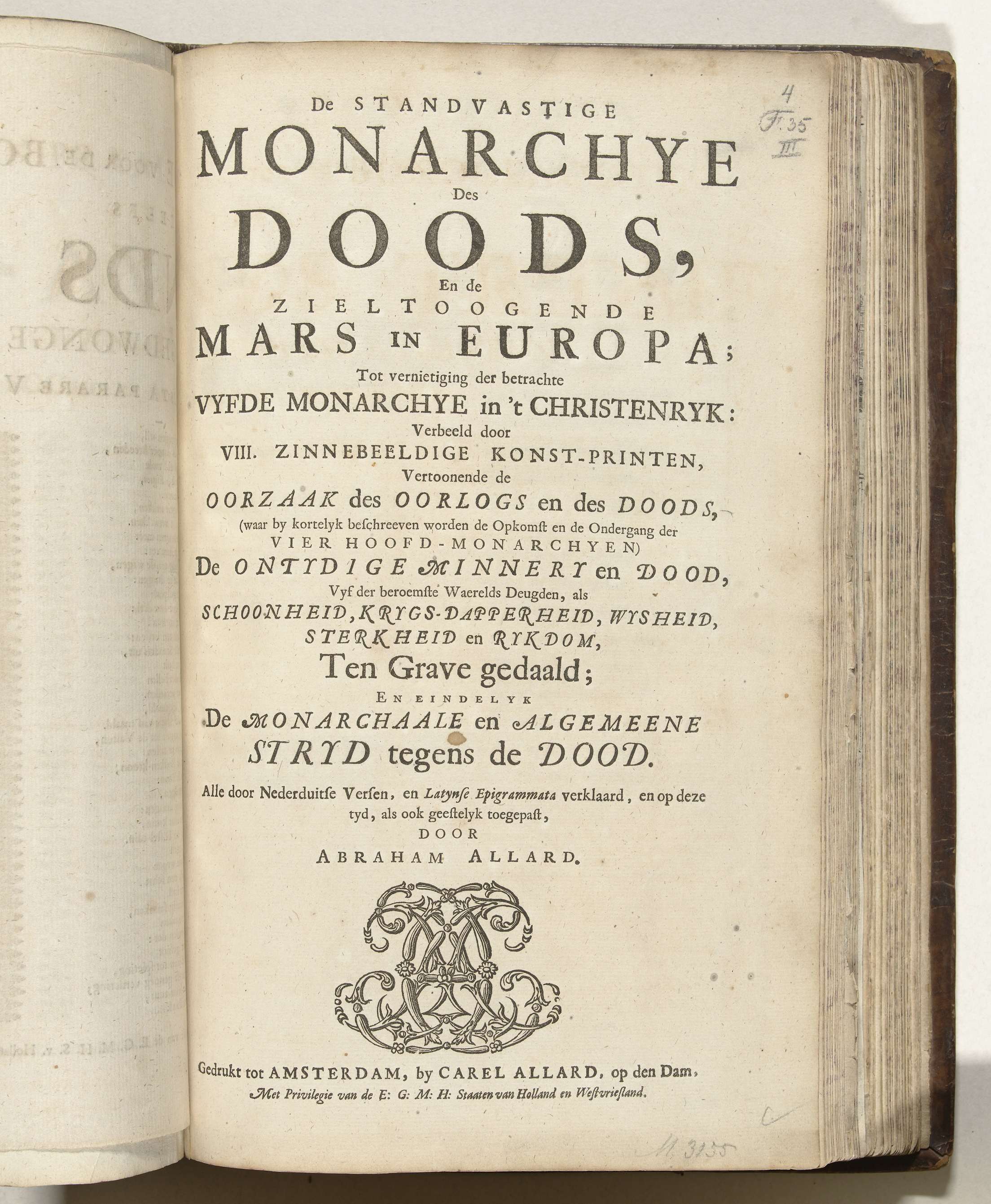Titelpagina voor: De Standvastige Monarchye des Dood...