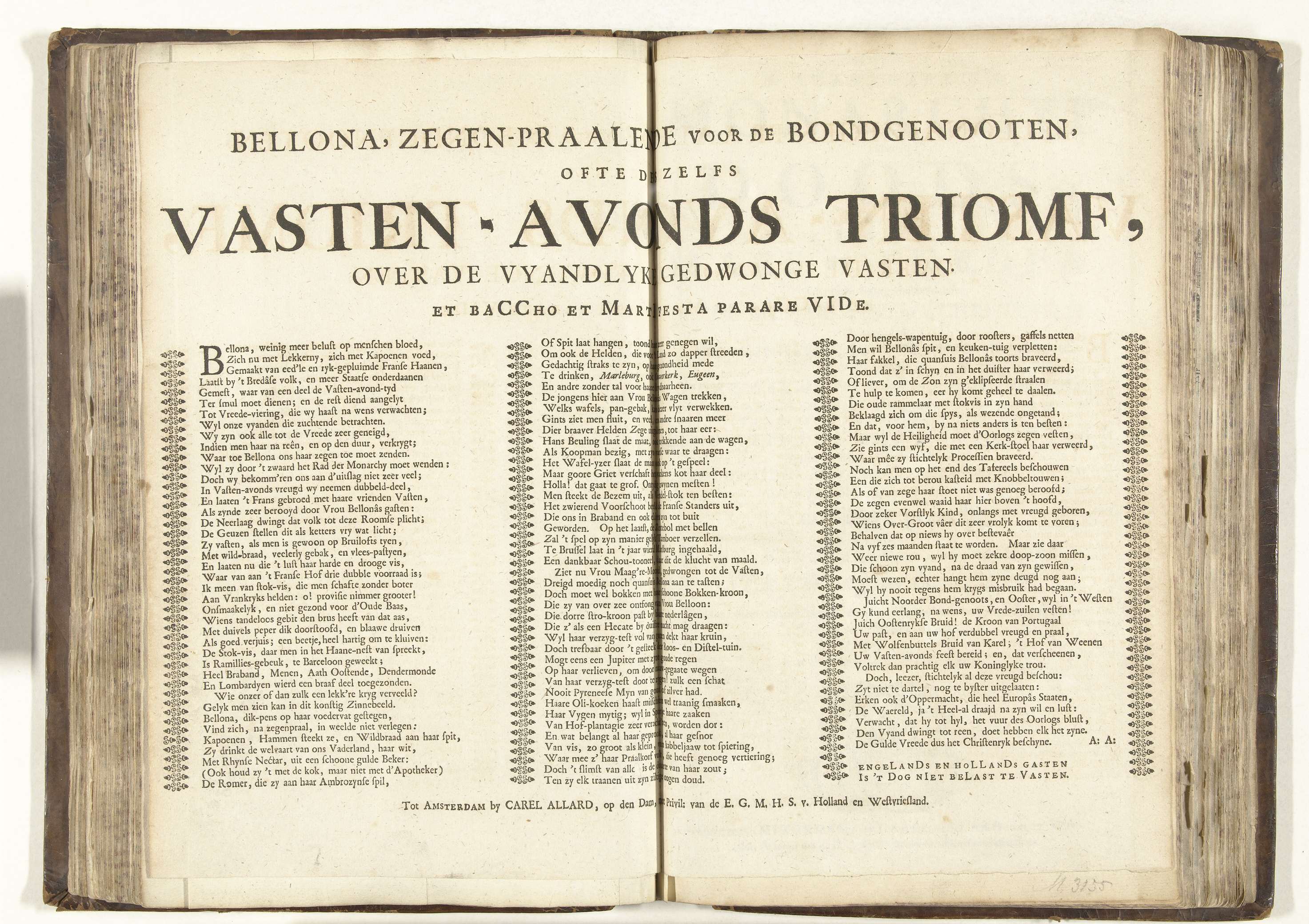 Tekstblad bij de prent met de strijd tussen Vastenav...