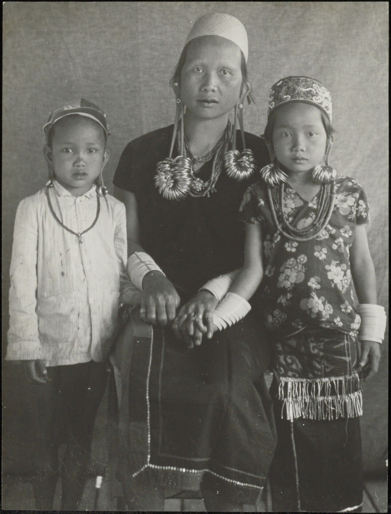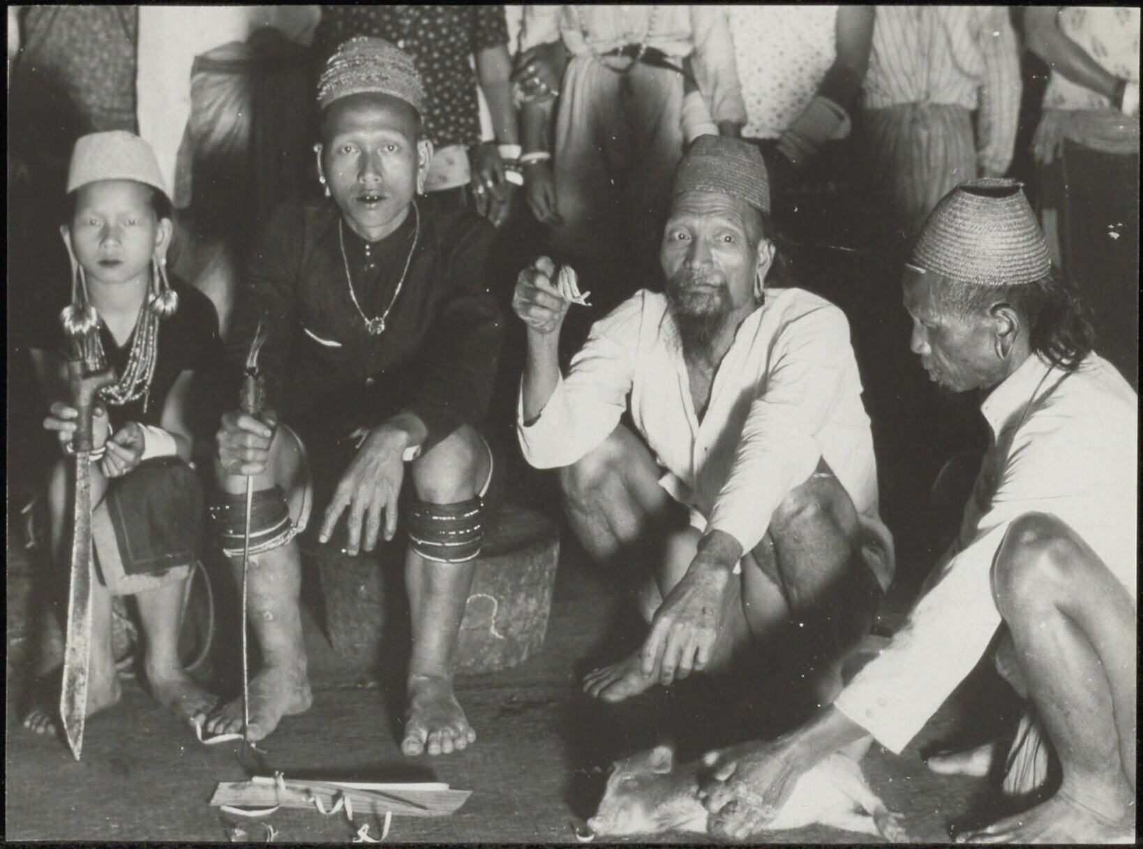 Groepsportret van een vrouw in traditionele kleding ...