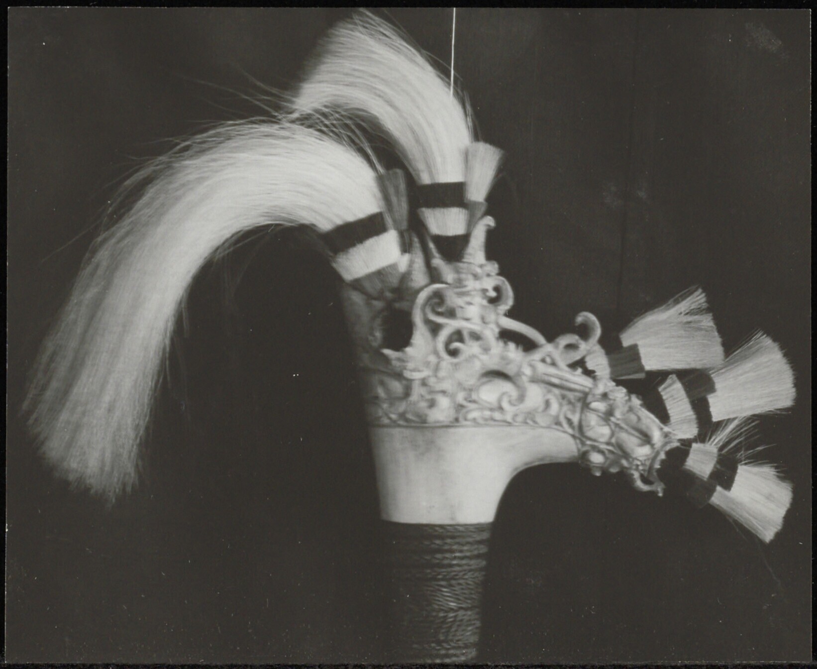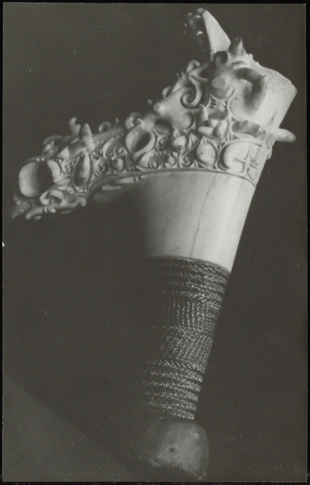 Detail van fijn snijwerk in de ivoren kop van het ge...