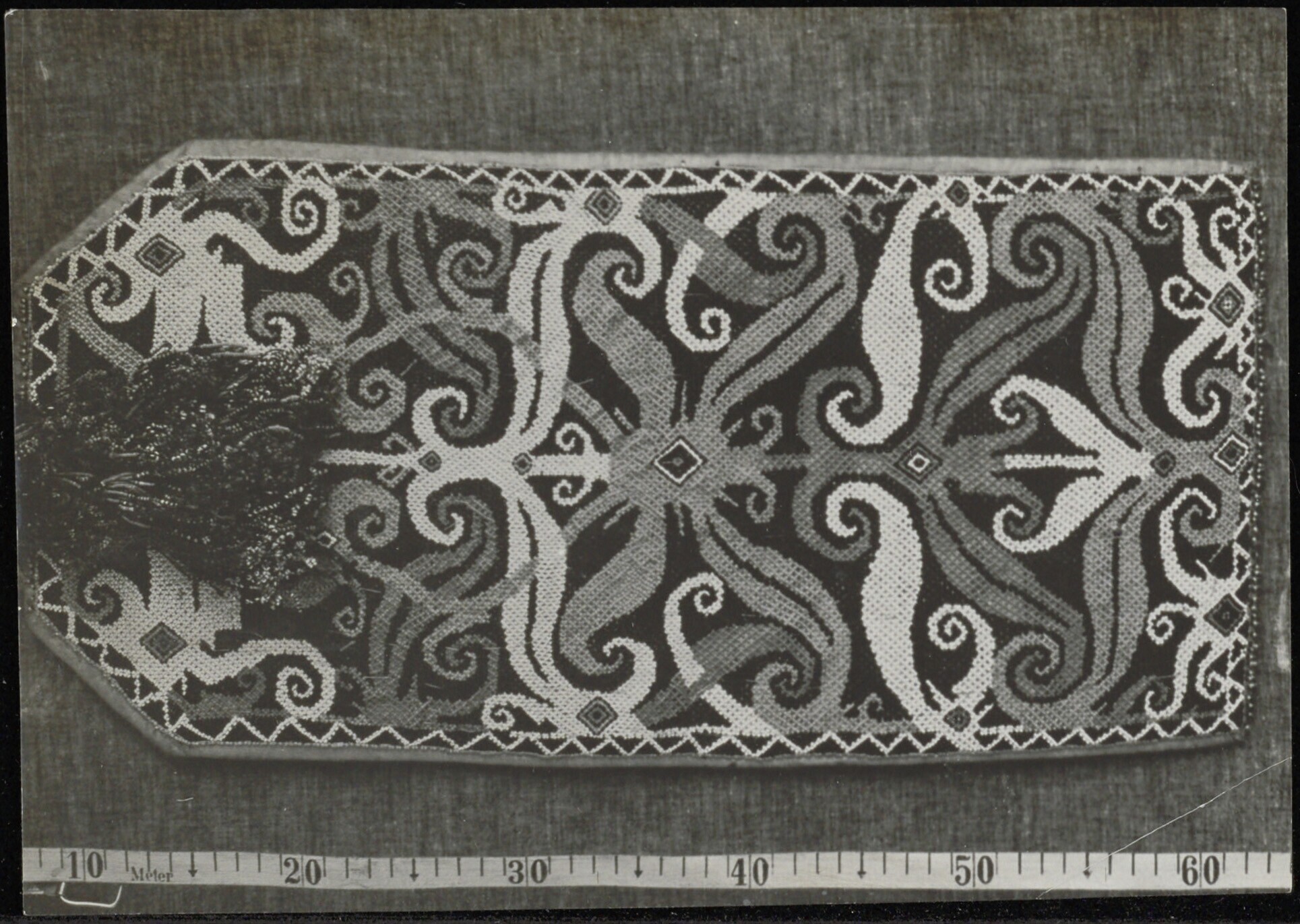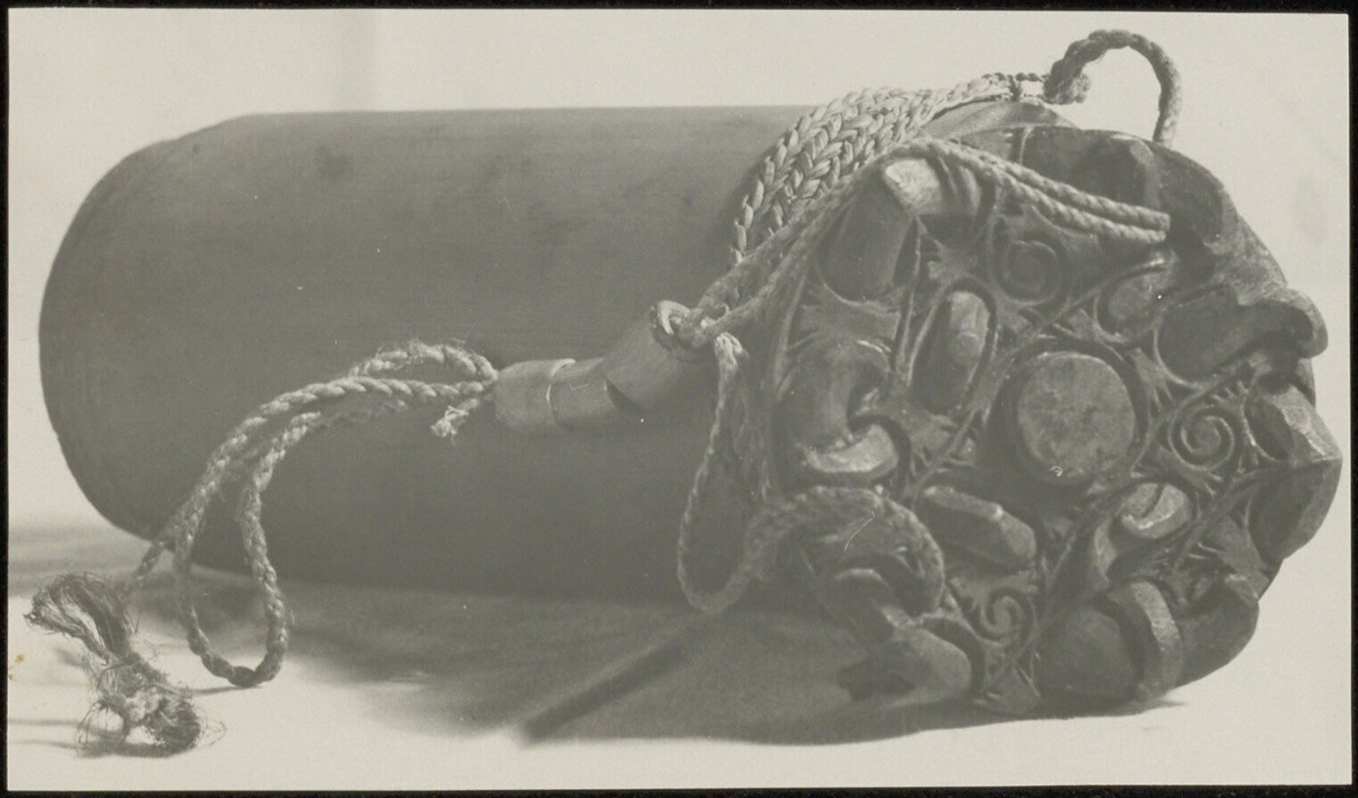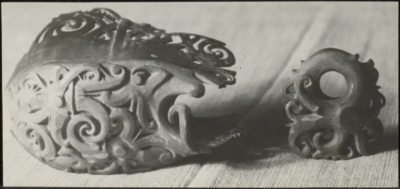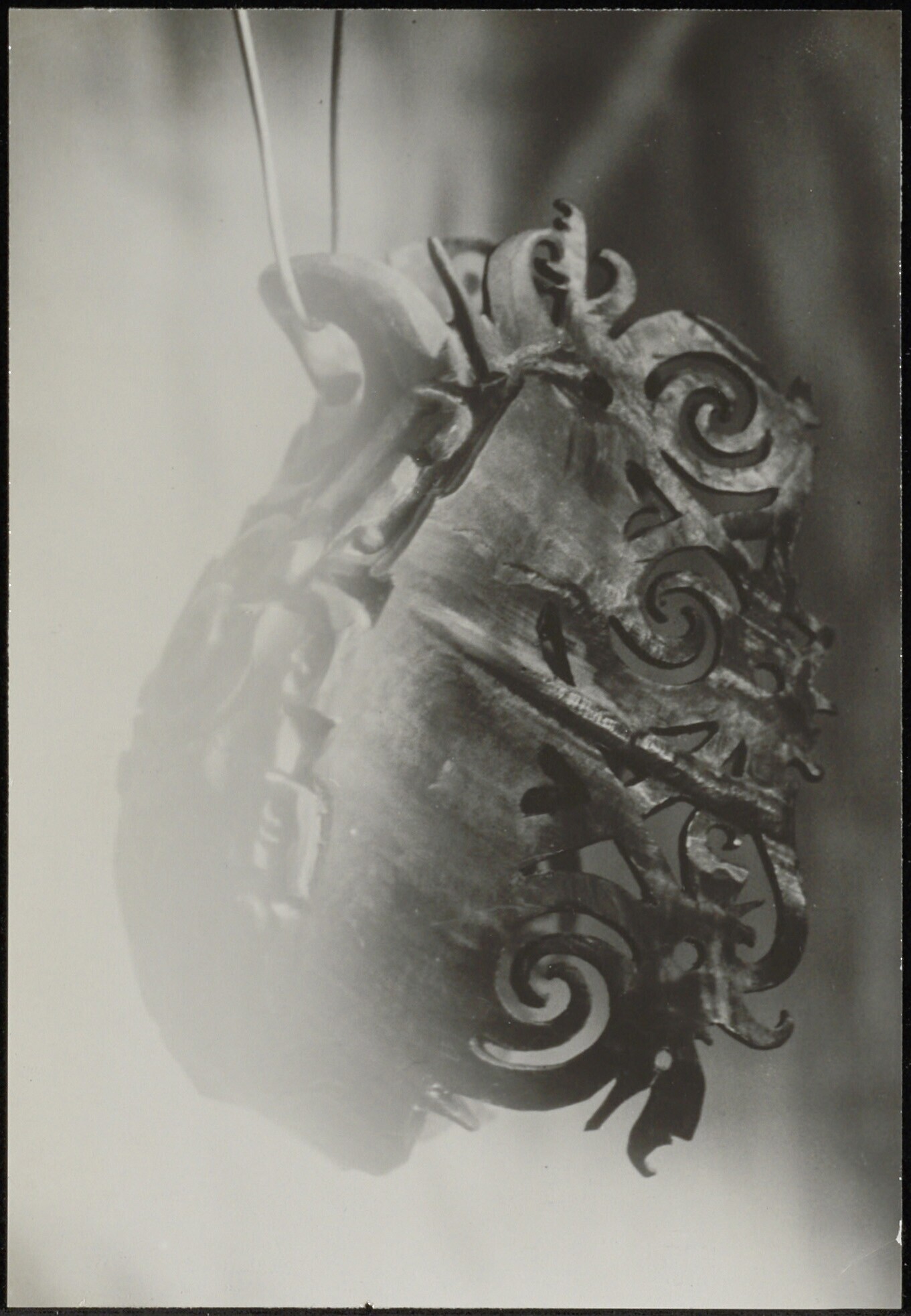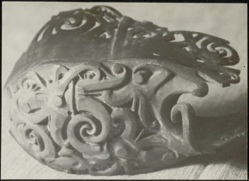 Detail van een voorwerp van opengewerkt houtsnijwerk