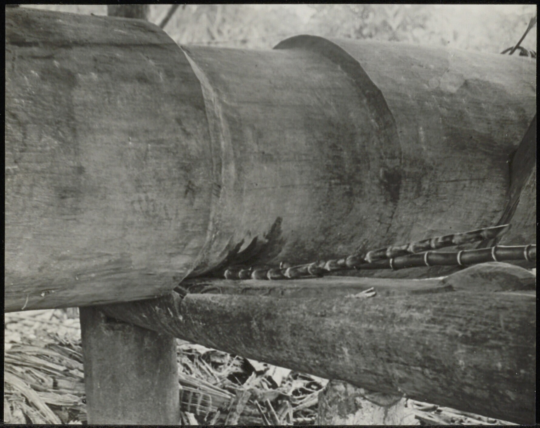 Detail van de plaats waar het riet in een suikermole...