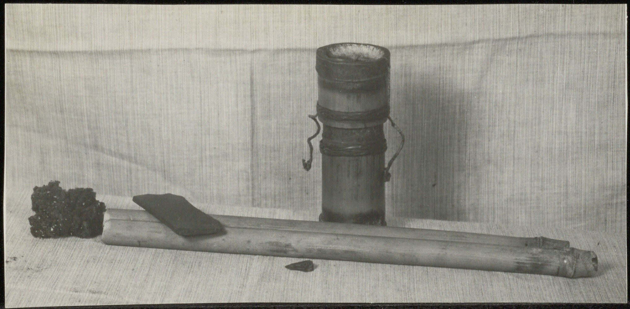 Twee bewerkte bamboekokers met traditionele uitgesnl...