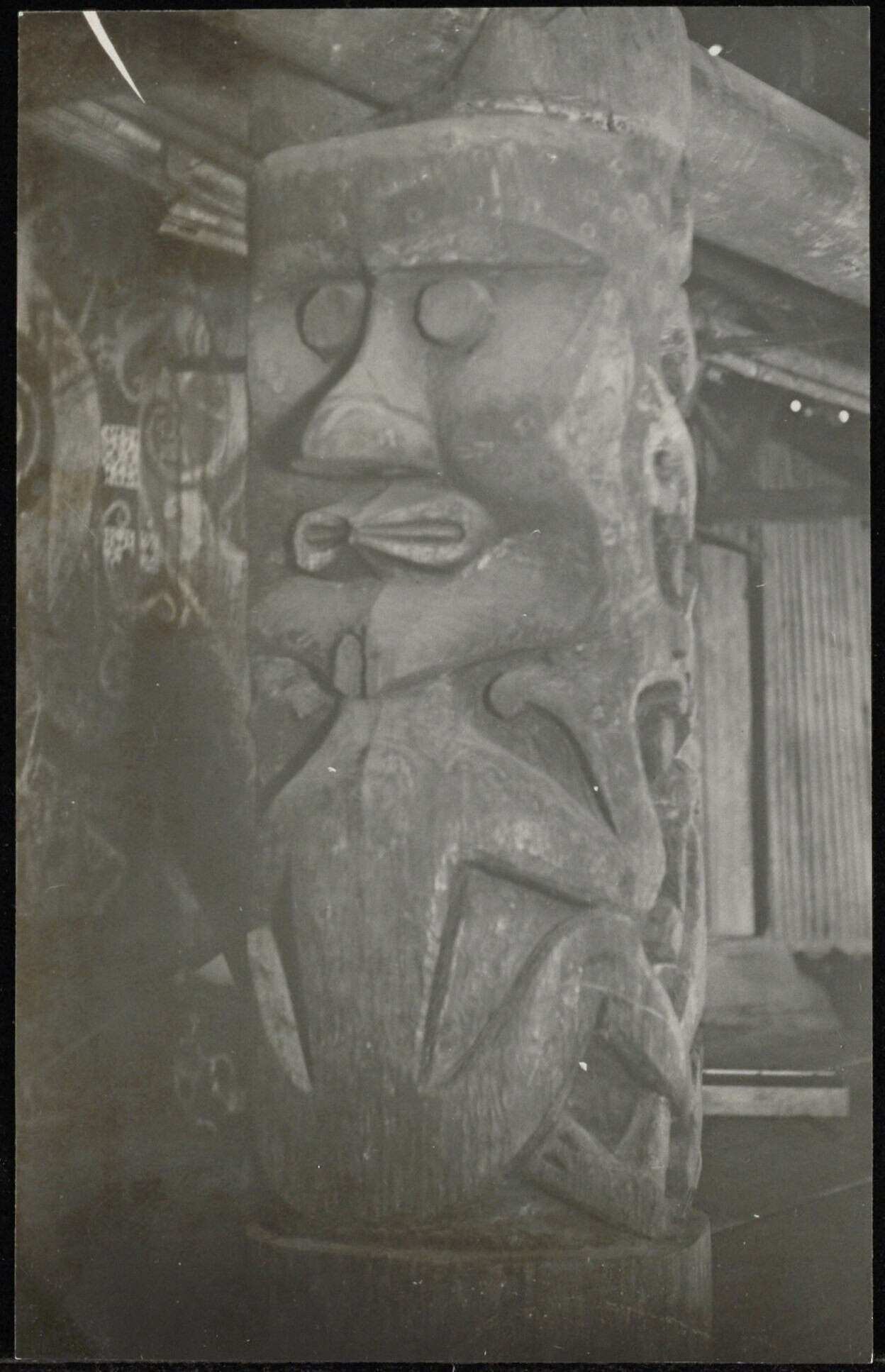 Rituele paal waaraan menselijke figuren zijn bevestigd