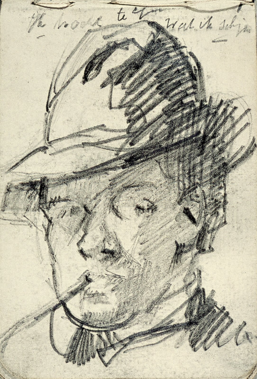 Zelfportret met pijp en hoed