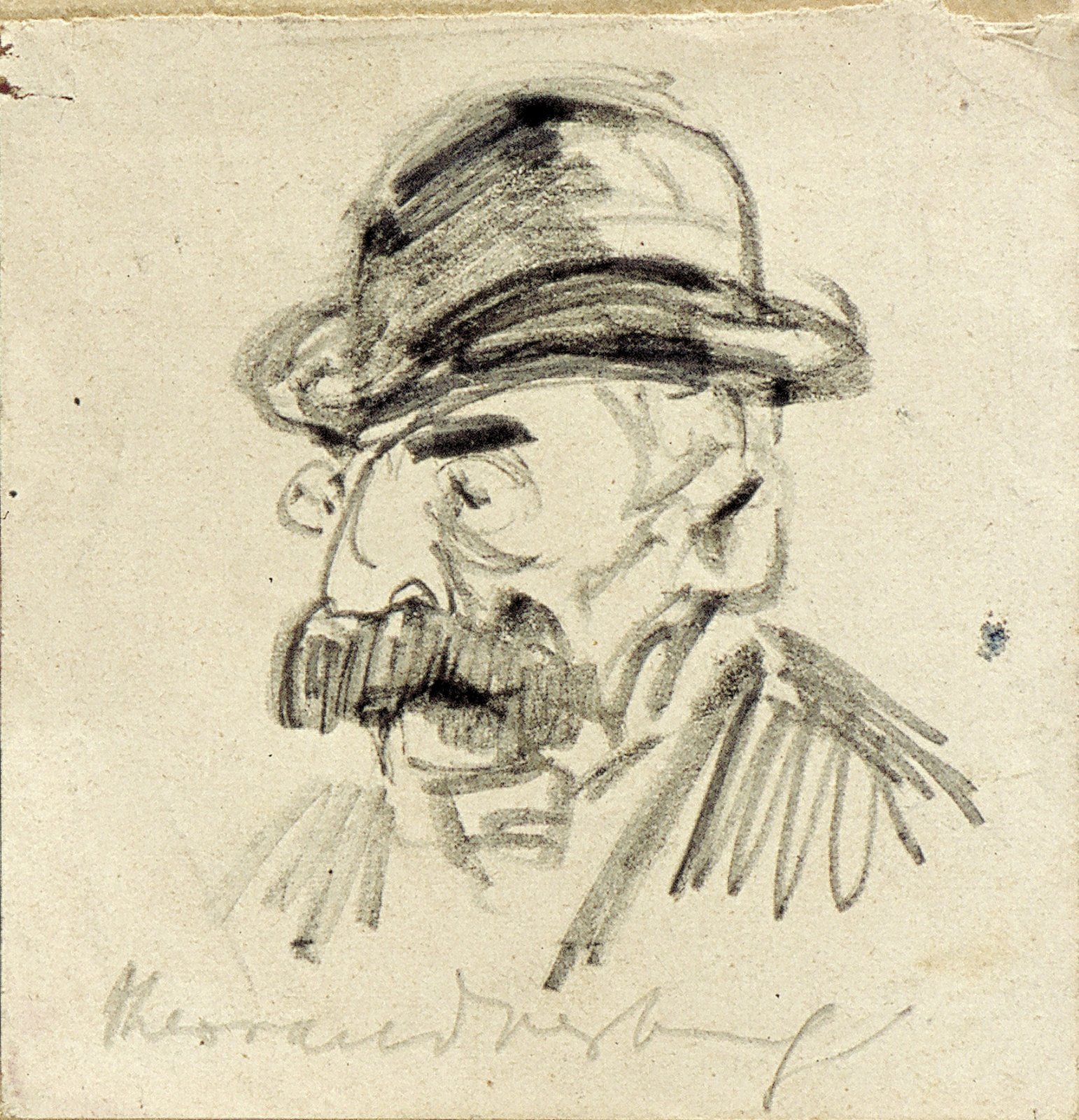 Portret van een man met snor en hoed