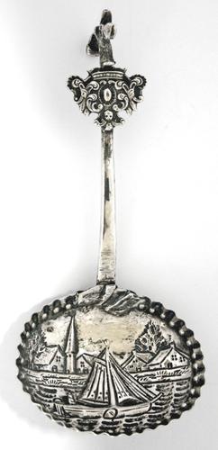 Suikerschep, bewerkte bak, uitgezaagde steel