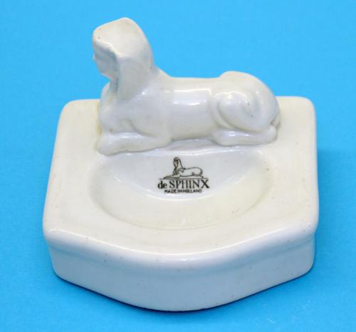 Asbak van keramiek. Liggende Sphinx haaks op de ver...