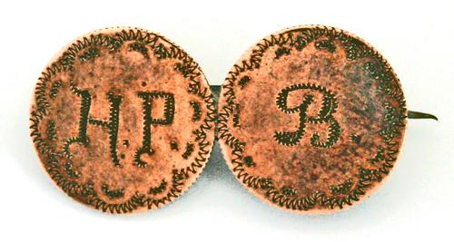 Draagspeld van twee koperen ½ cent uit 1909