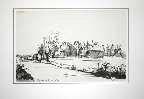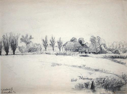 Potloodtekening. Boerderij aan de Holyweg Vlaardingen.