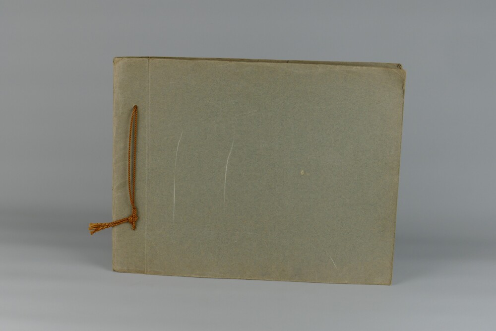Litho, voorstellende floraalmotief met landschap en ...