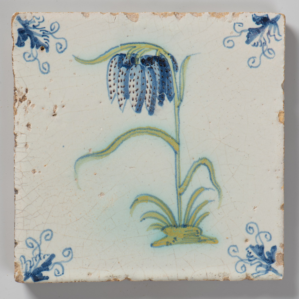 tegel van aardewerk met tinglazuur, voorstellende: w...