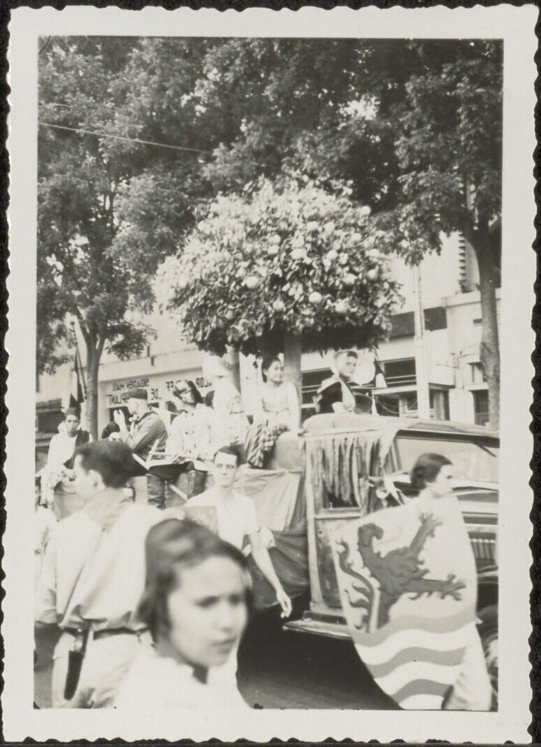 Auto met daarop vrouwen in Nederlandse klederdracht ...