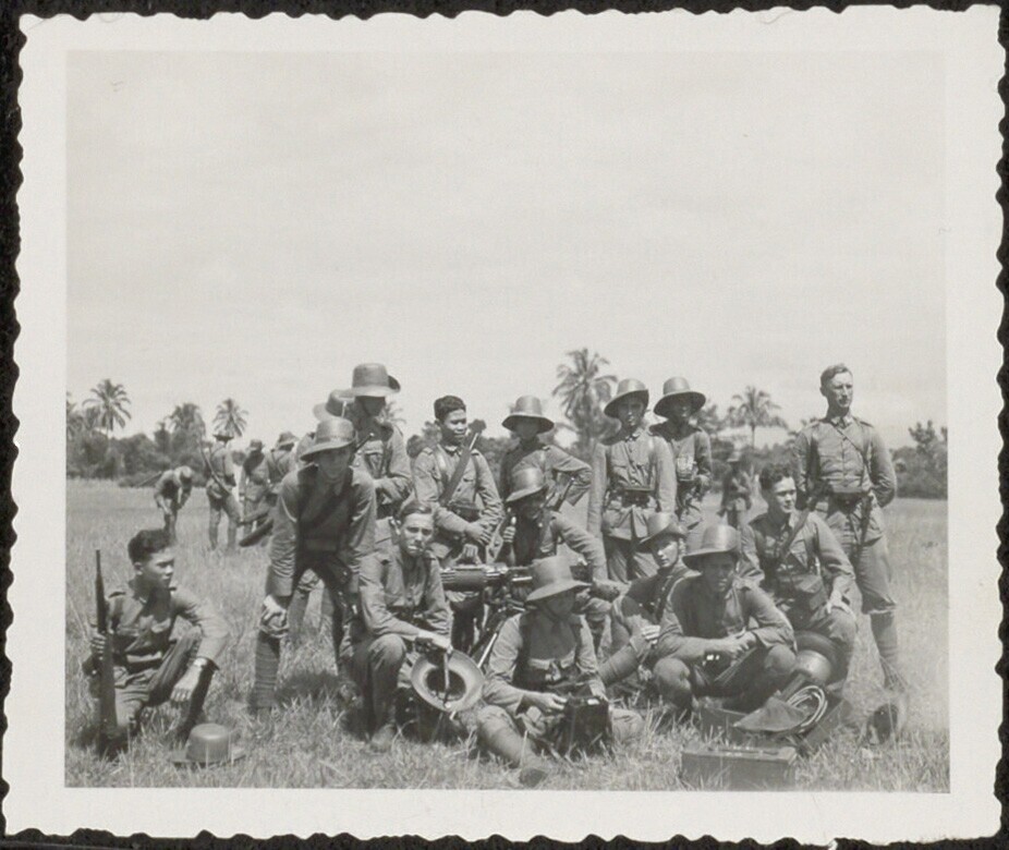 Groep militairen van het KNIL na afloop van een schi...