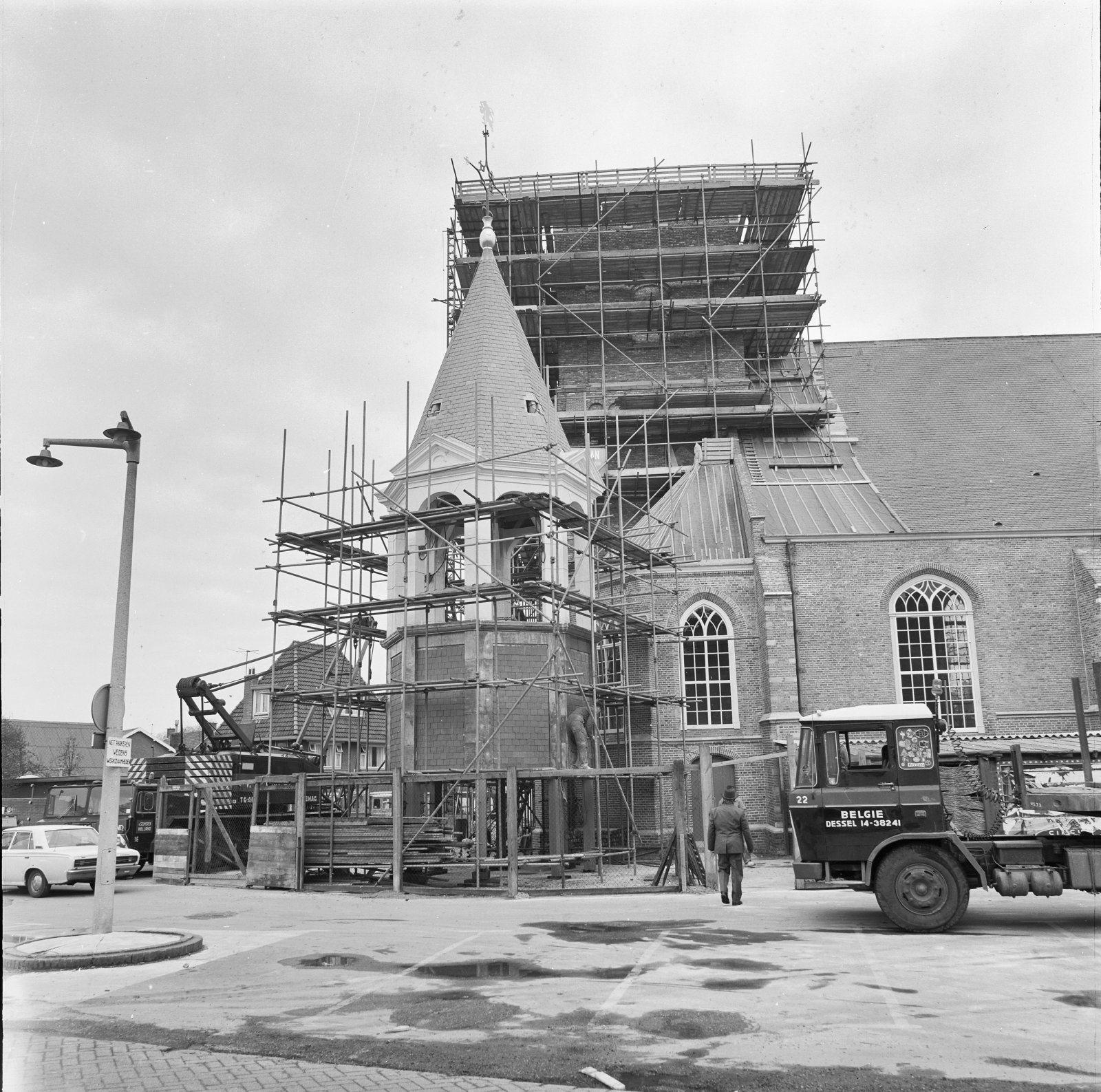 Torenspits klaar om opgehesen te worden