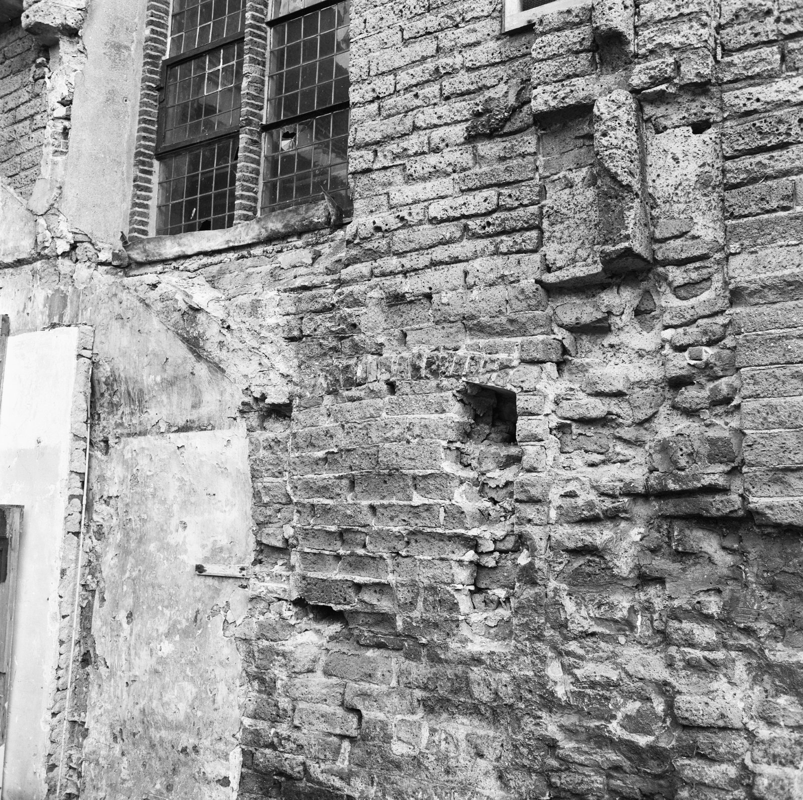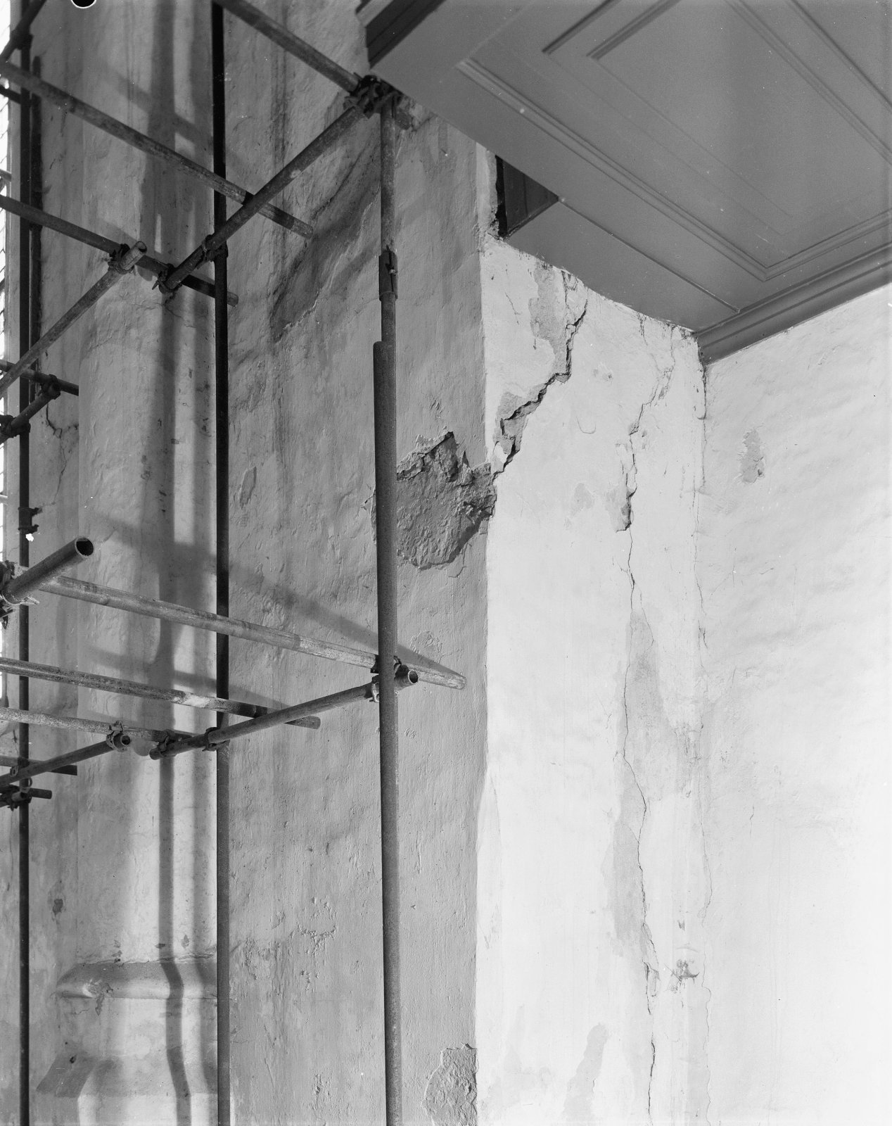 Detail noordwand tijdens restauratie