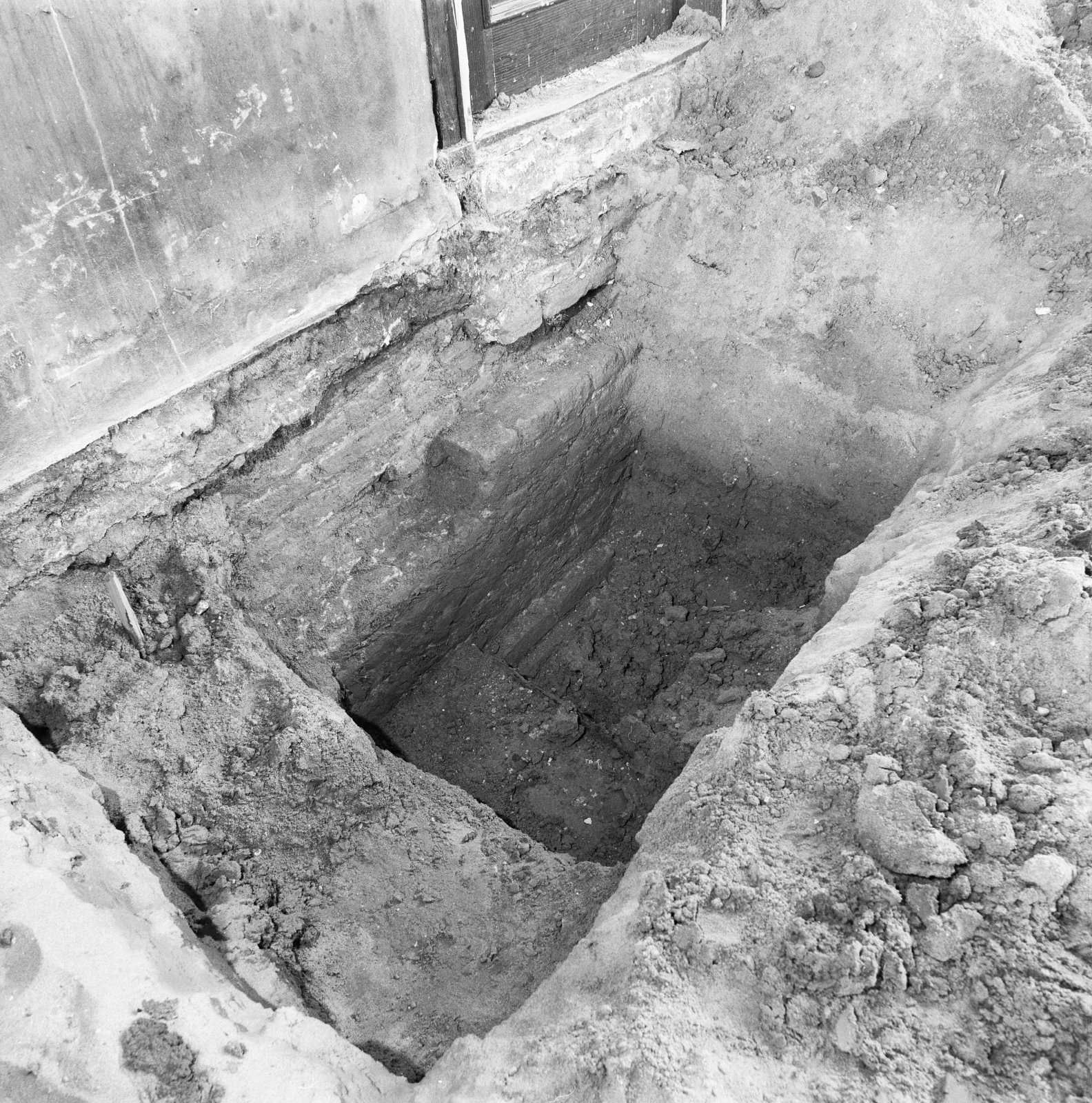 Interieur, blootgelegde fundering tijdens restauratie