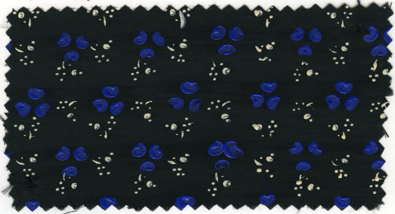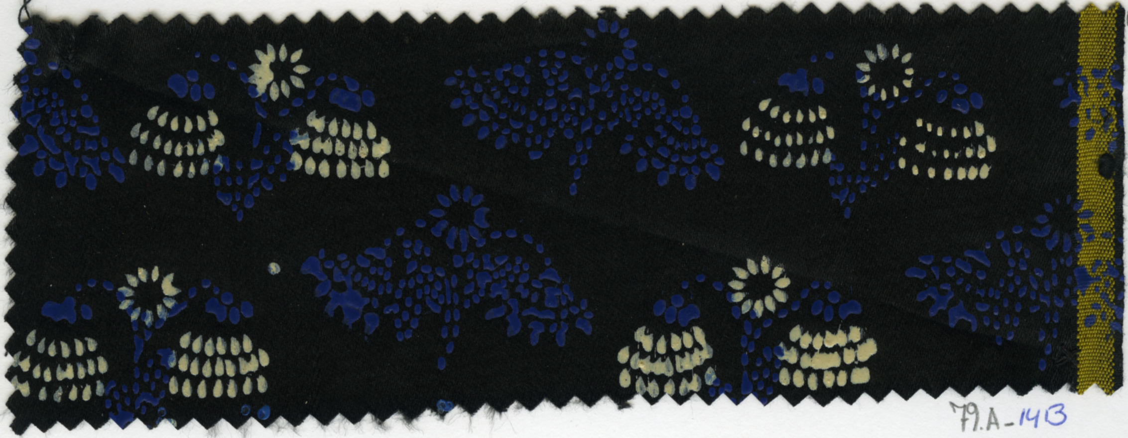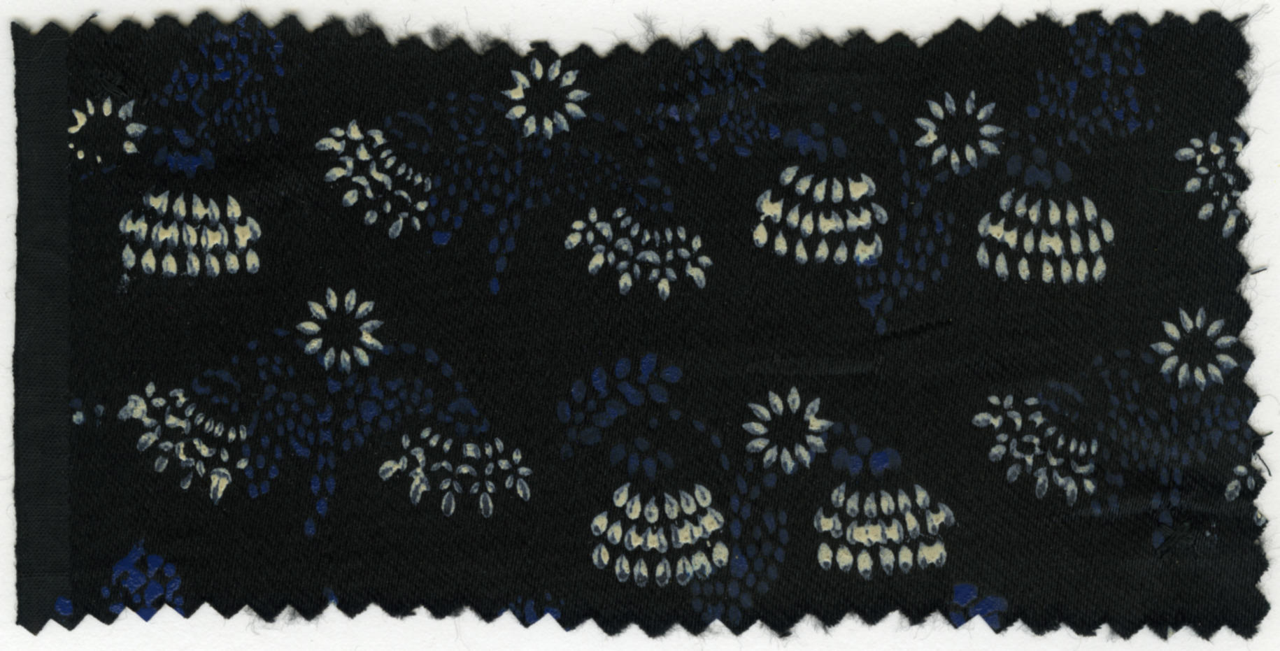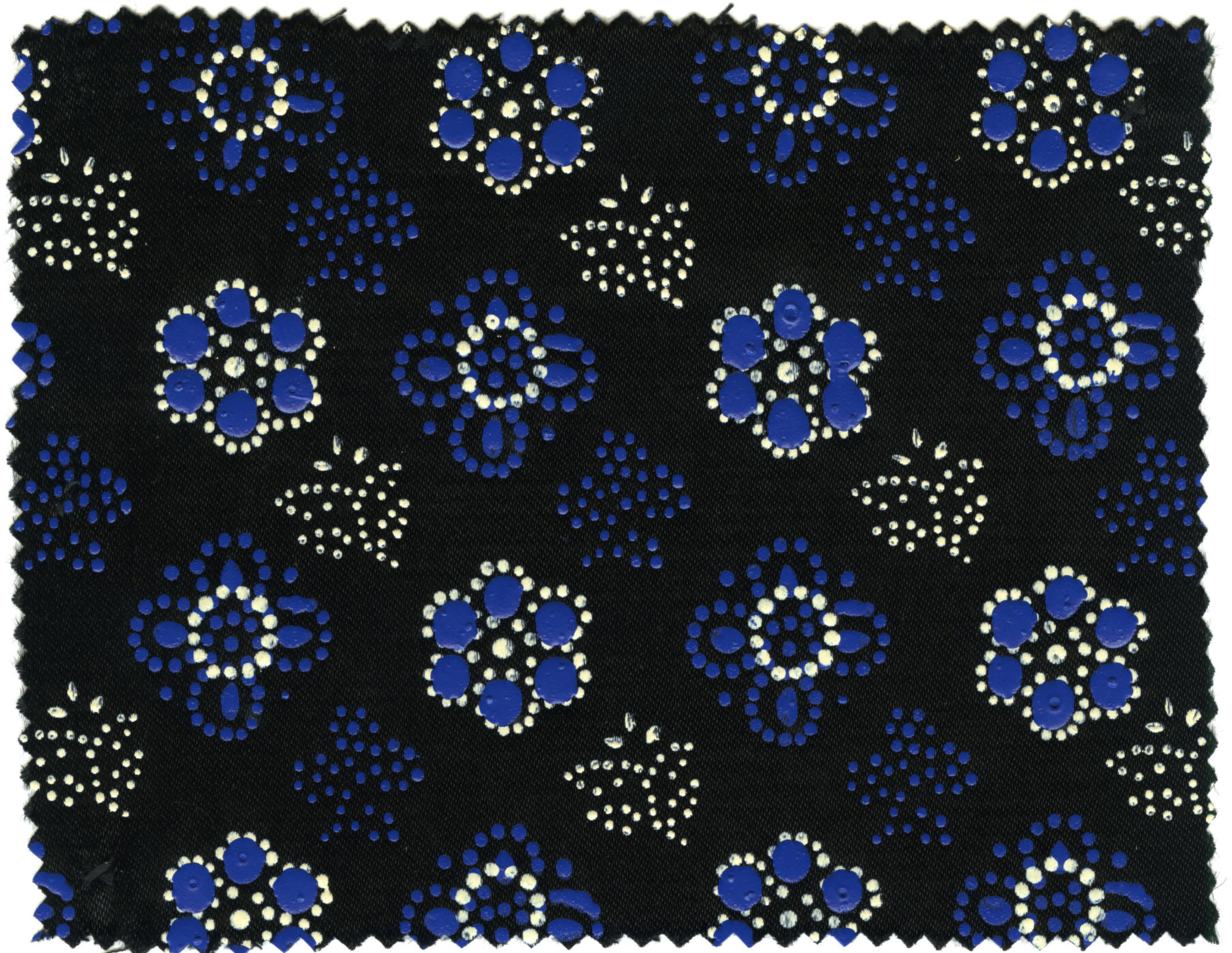 Zwart satijn met blauw-wit stipwerk, Staphorst, 1900...