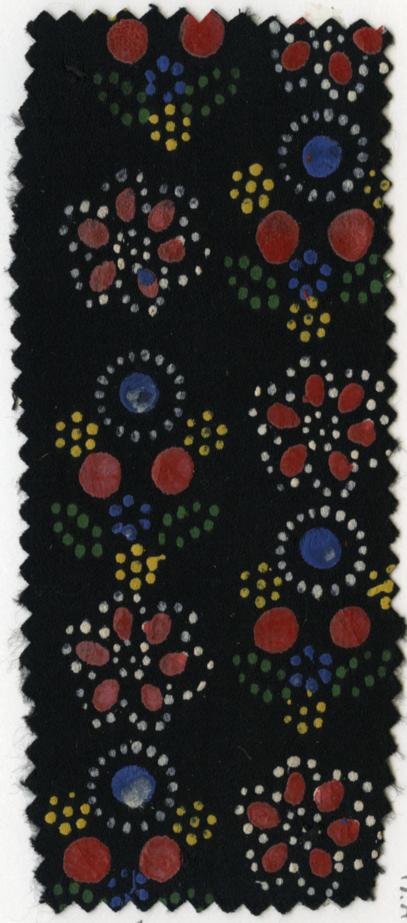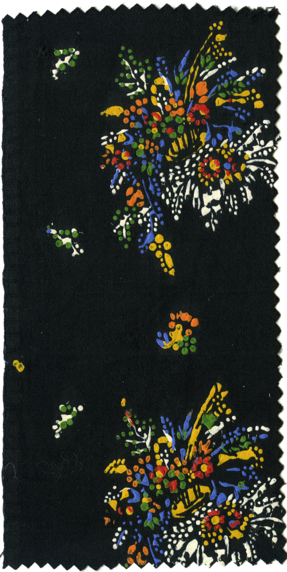 Zwart satijn met meerkleurig stipwerk, Staphorst, 19...
