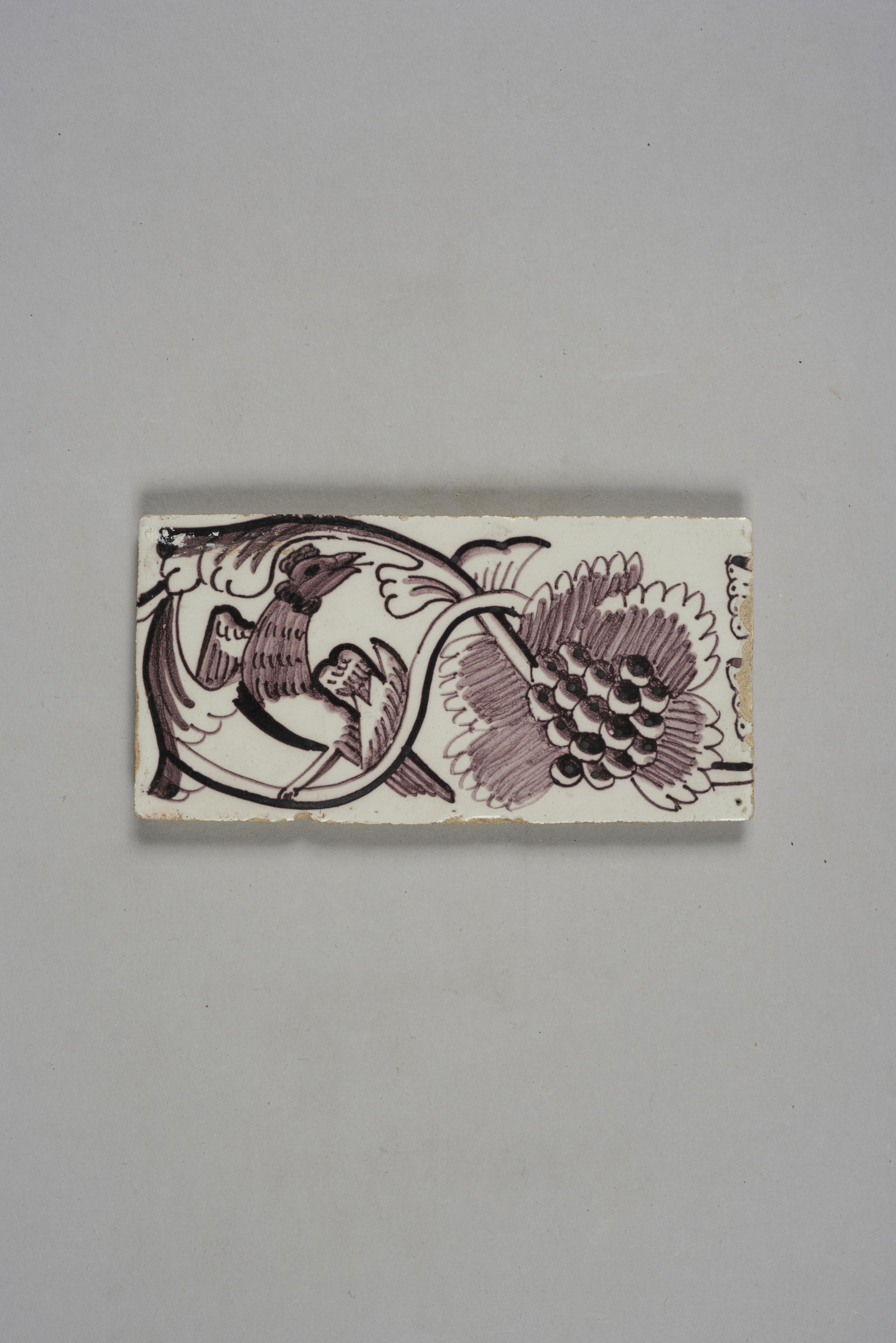 Twee wandtegels met afbeelding vogel, 1650–1700