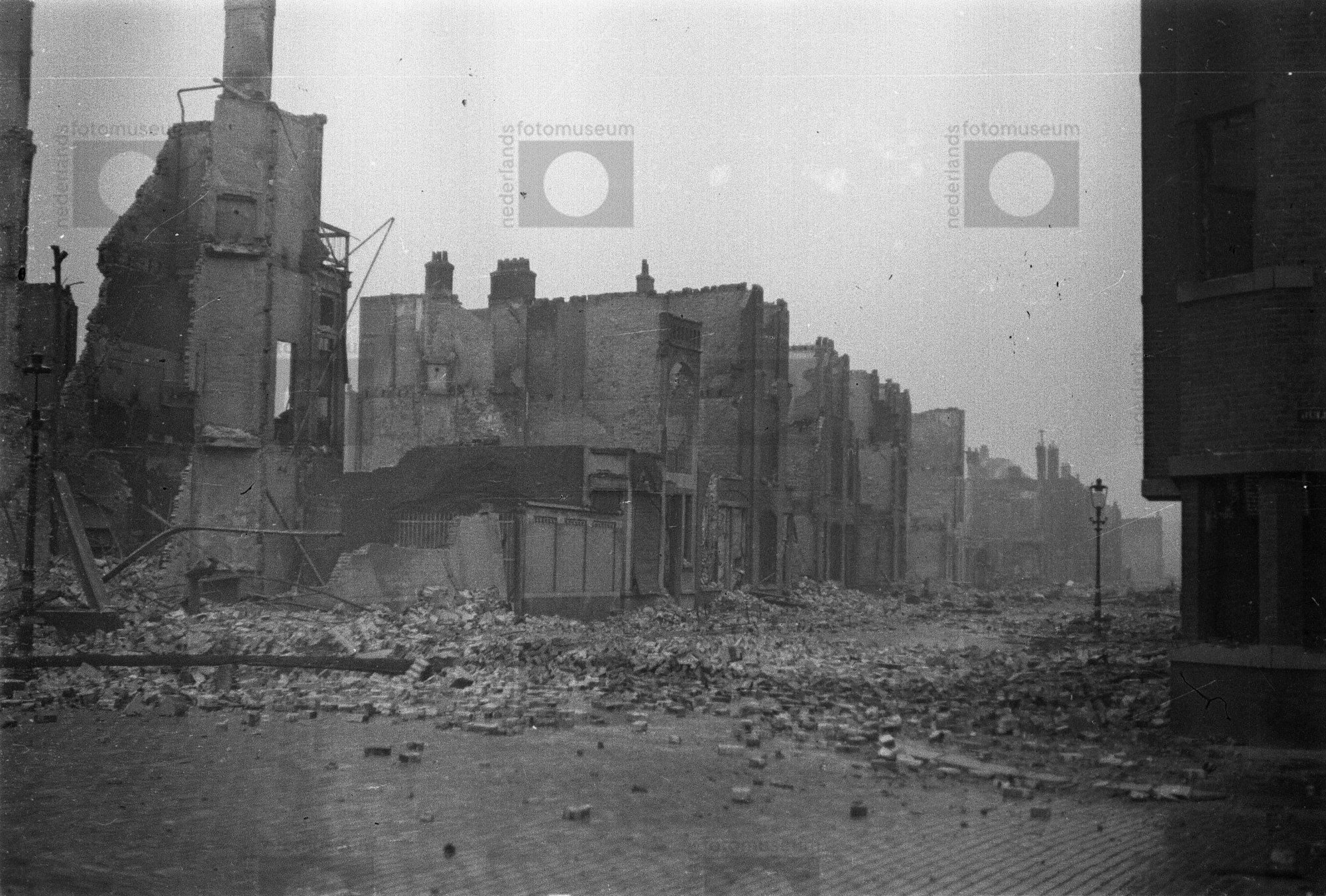 Oorlogsschade in het Bezuidenhout te Den Haag na een...